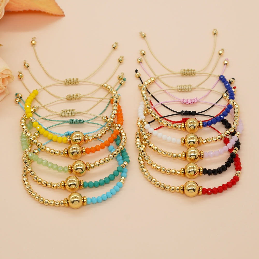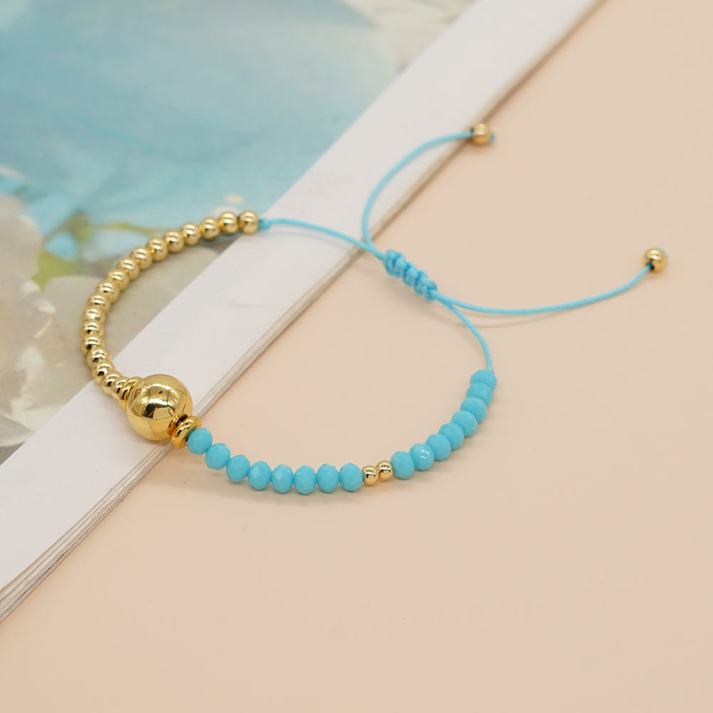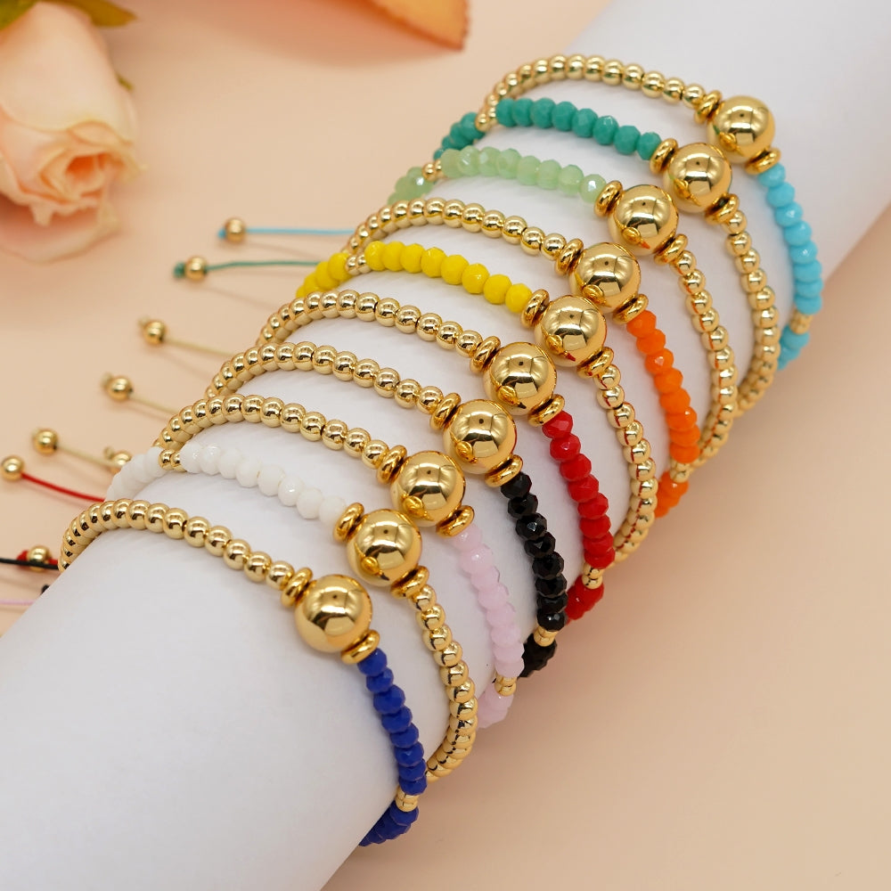 Retro Colorful Crystal Beaded Copper Bracelet for Women