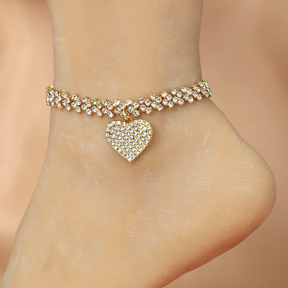 Heart Shape Rhinestone Pendant Anklet - Fashion Beach Jewelry