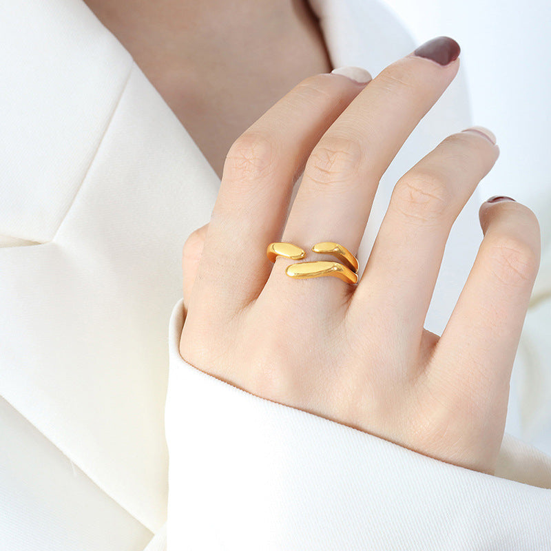 Geometric Titanium Steel 18K Gold Plated Open Ring - Minimalist Adjustable Design