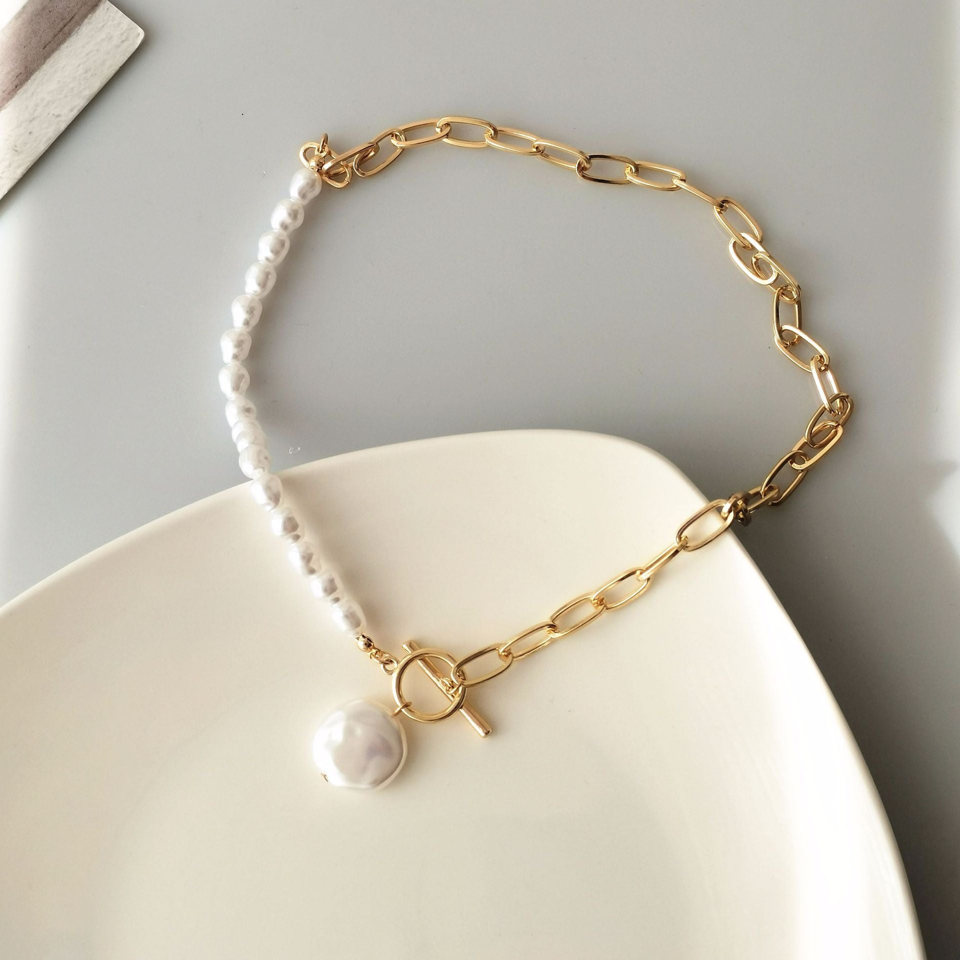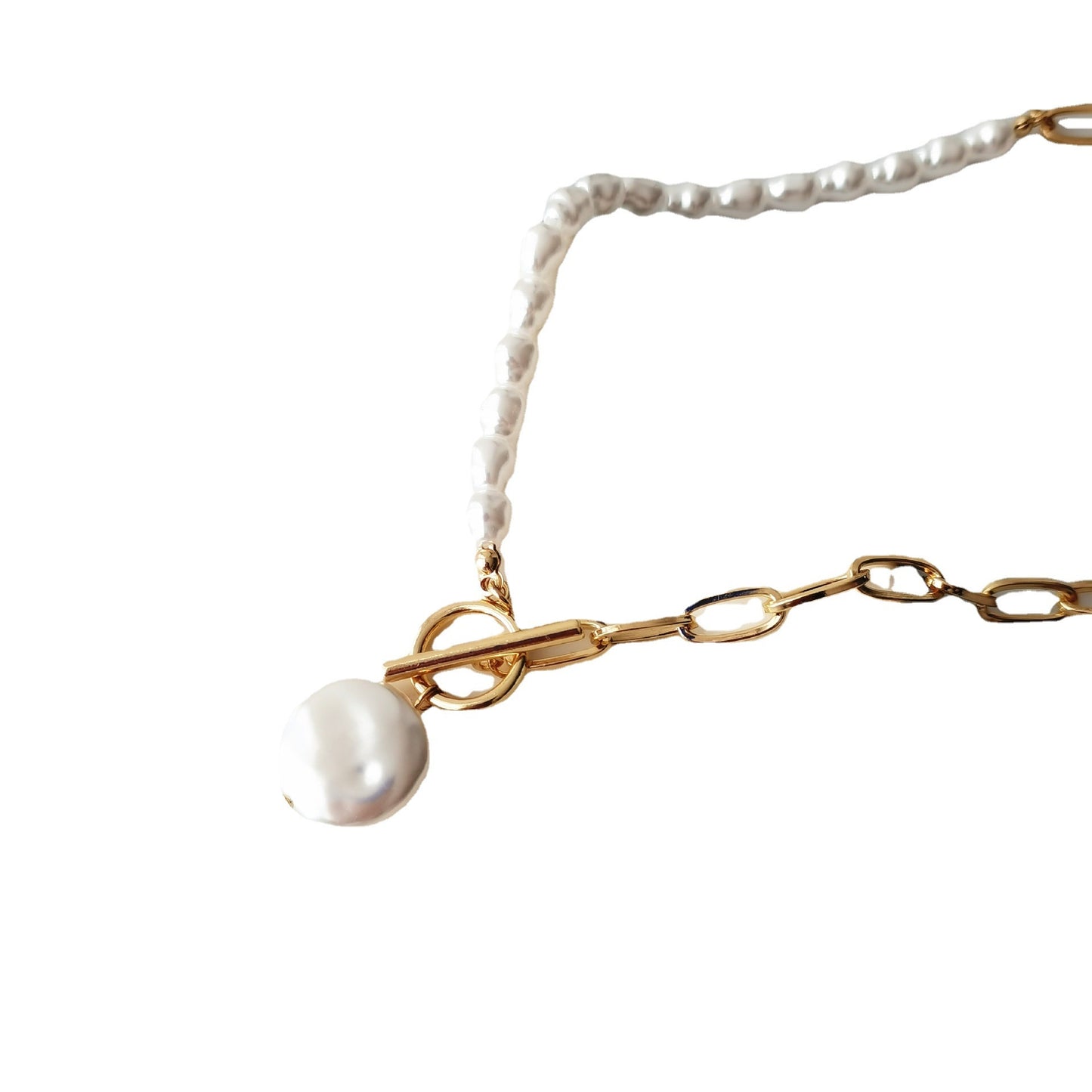 Elegant Baroque Pearl Pendant Necklace with Iron Plating Chain