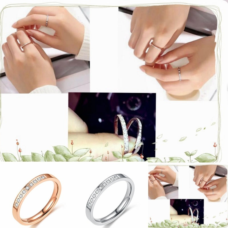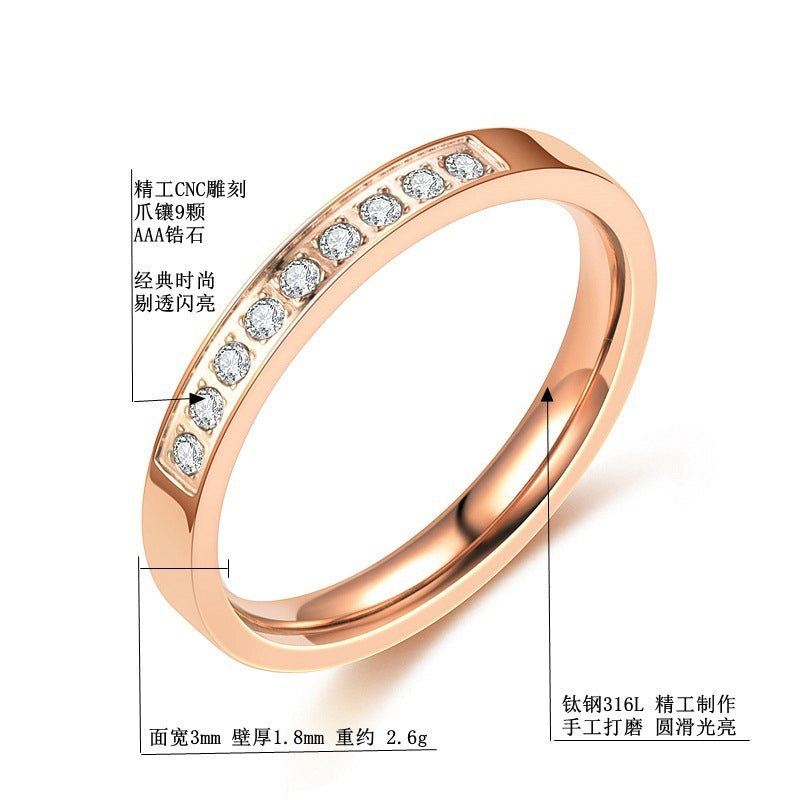 U Shape Stainless Steel Zircon Ring 3mm Rose Gold Women's Band