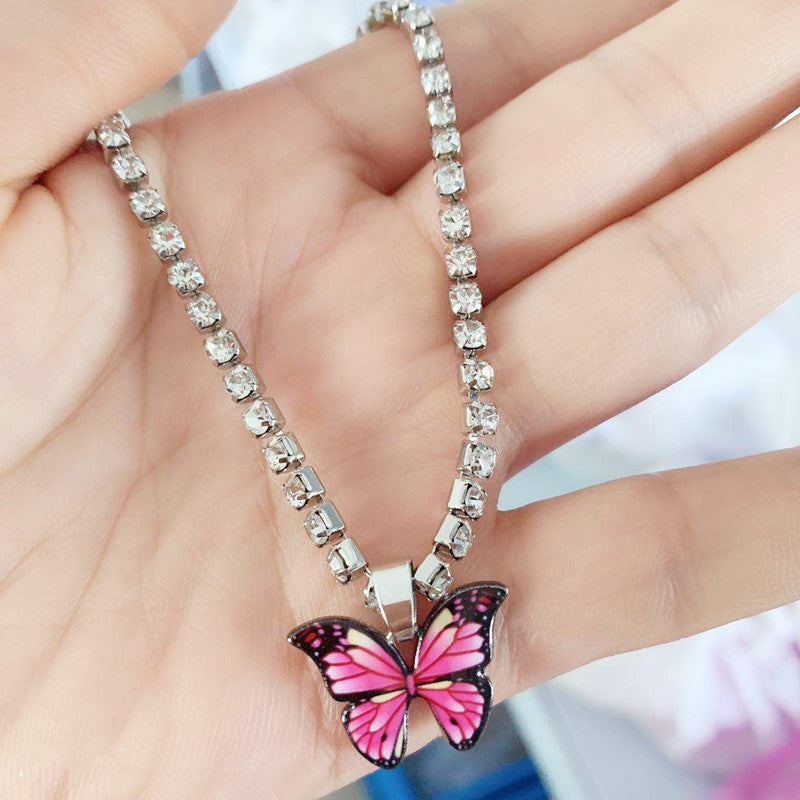 Butterfly Pendant Anklet with Colorful Gemstones for Women