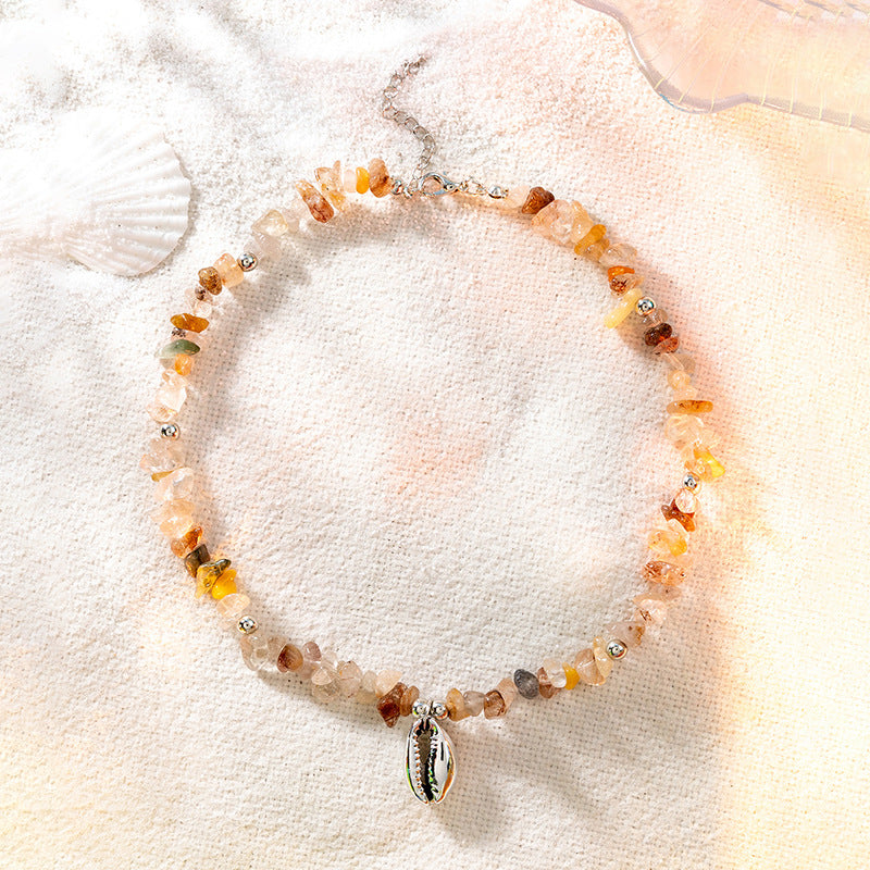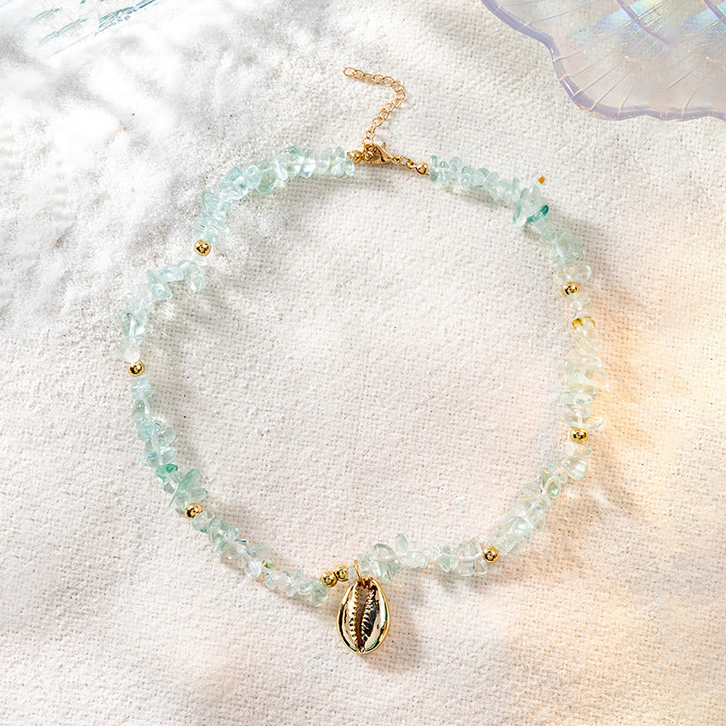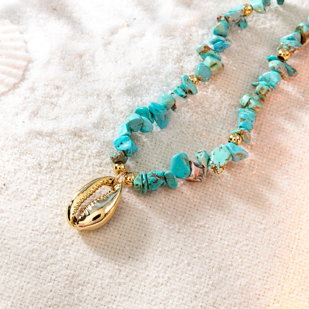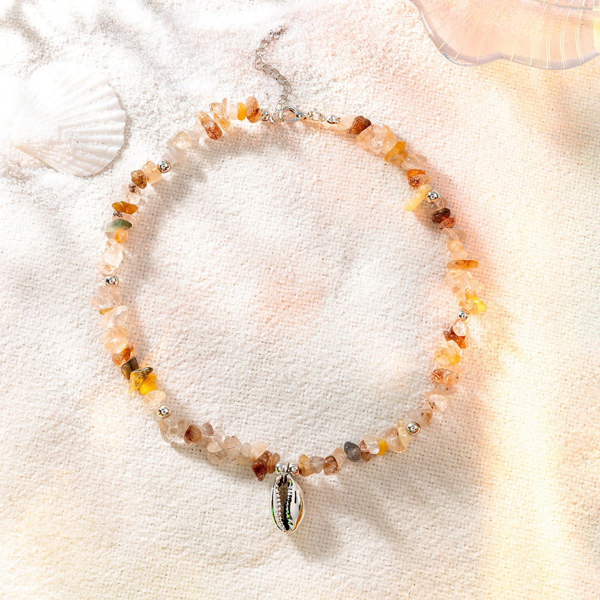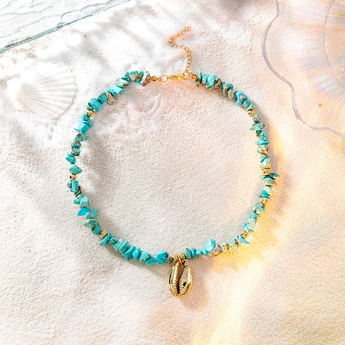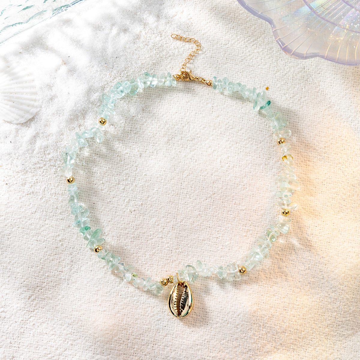 Colorful Shell and Gravel Beaded Necklace and Bracelet Set - Unique Beach-Inspired Jewelry