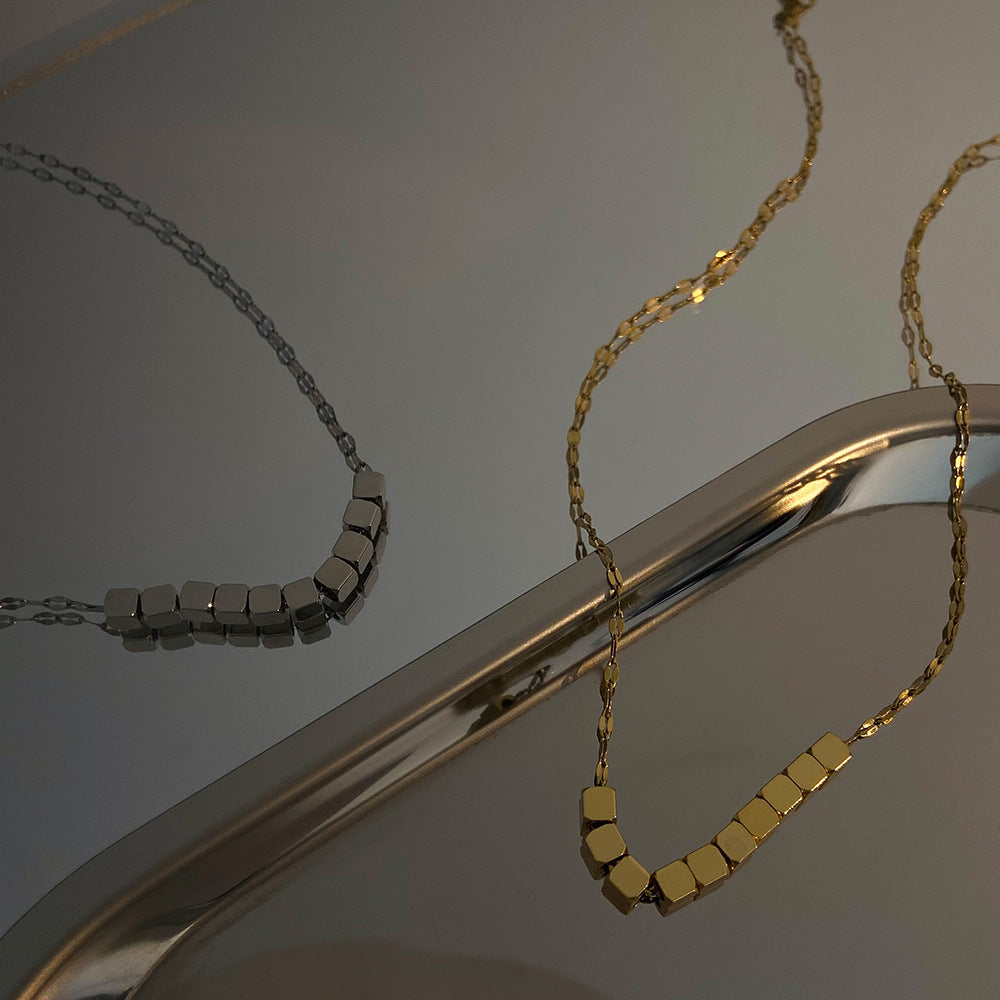 Geometric Stainless Steel 14K Gold Plated Cube Bead Necklace