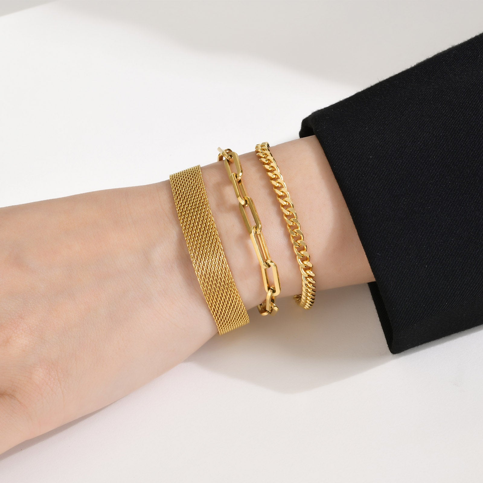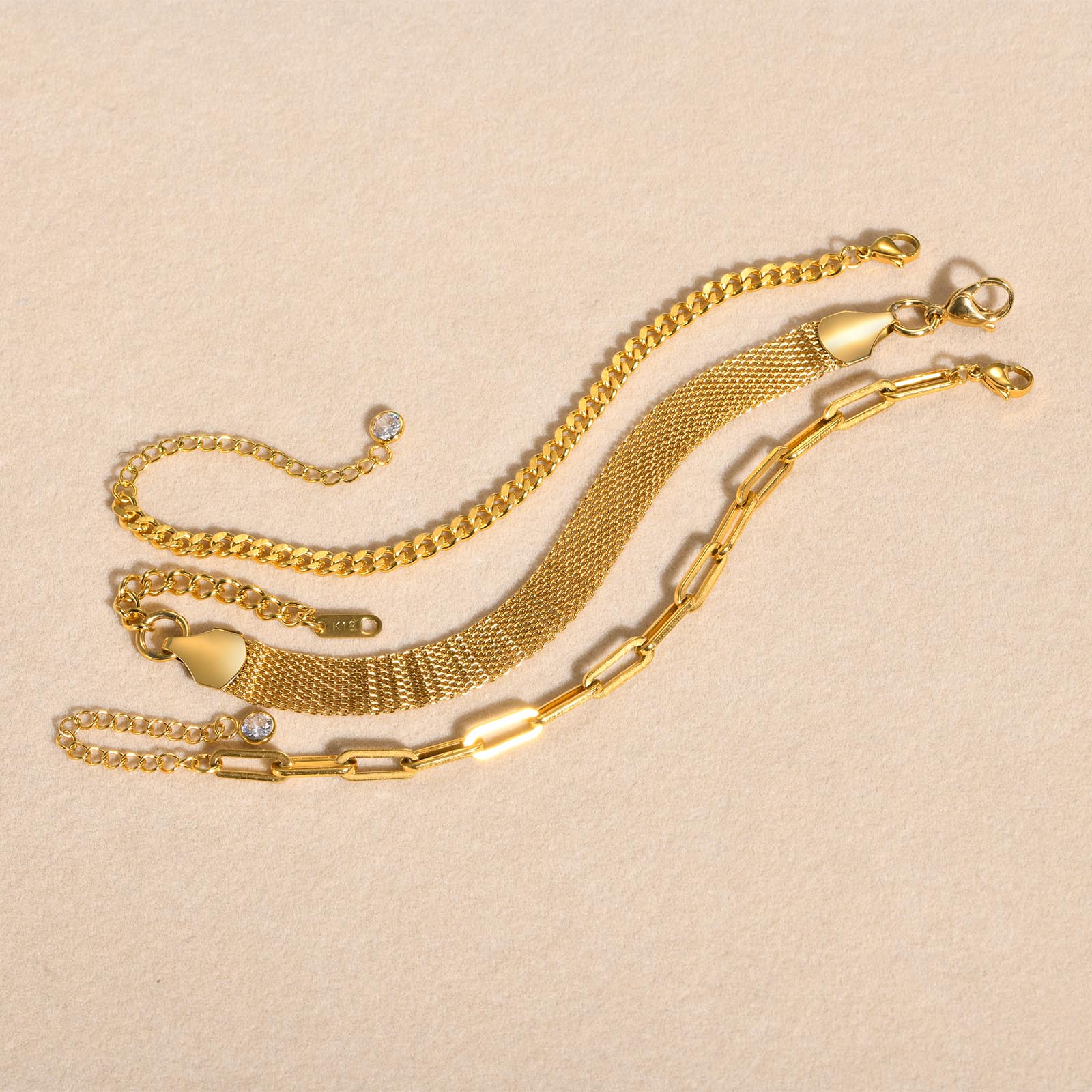 18K Gold Plated Geometric Stainless Steel Zircon Mesh Chain Bracelet