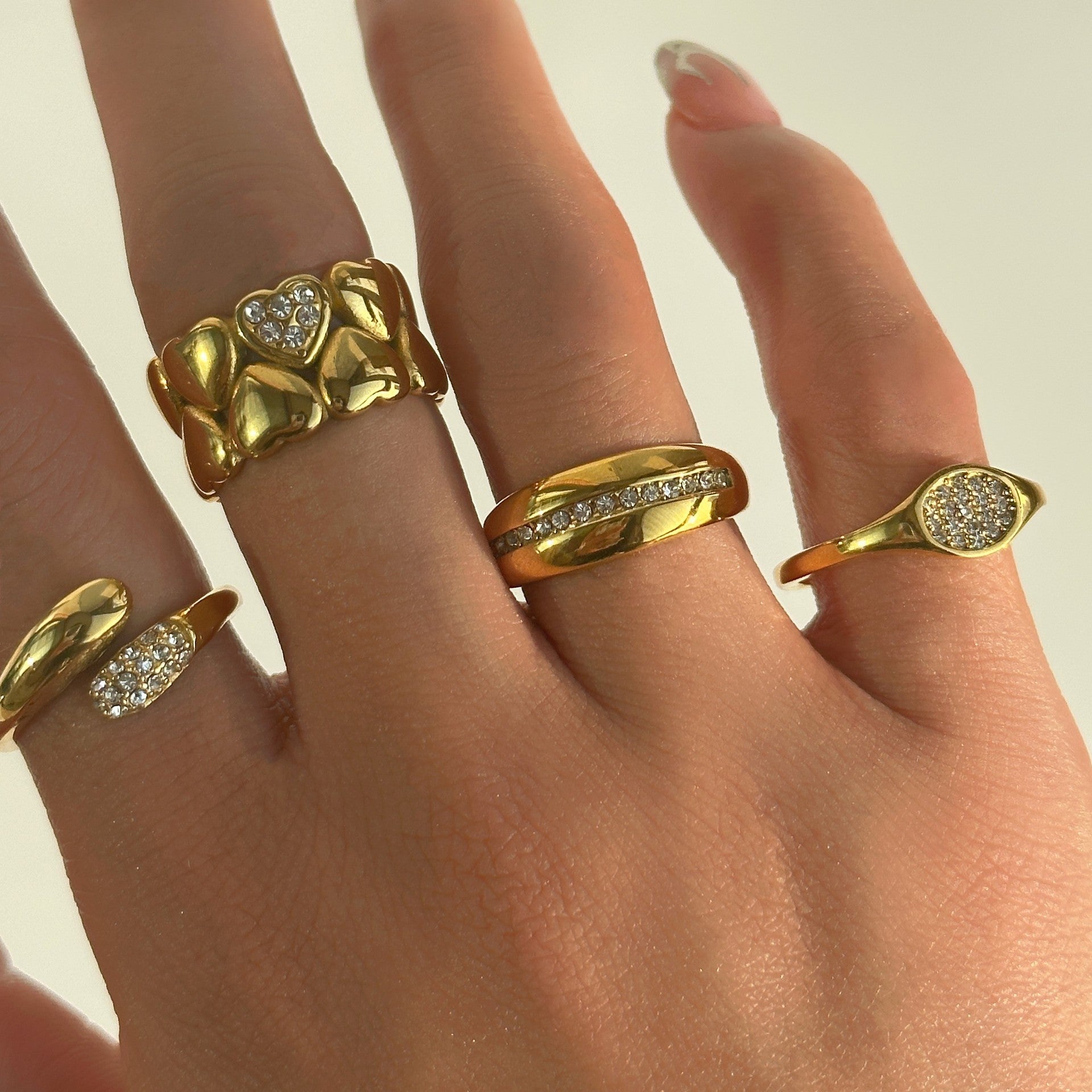 Wholesale Heart Shape Titanium Steel Zircon Adjustable Paperclip Ring
