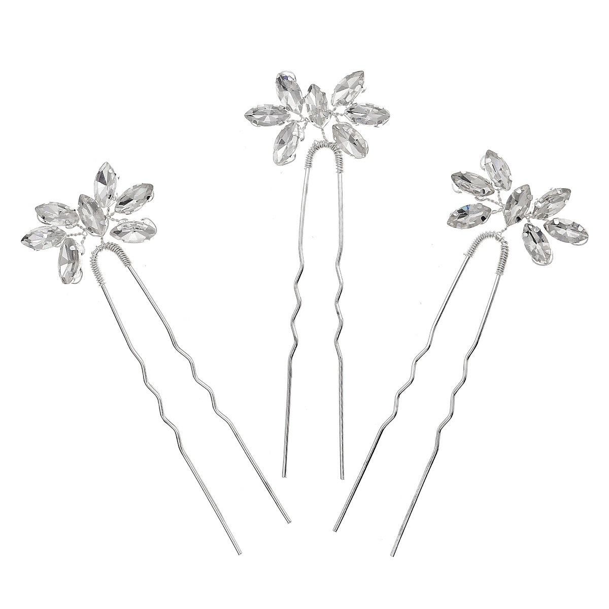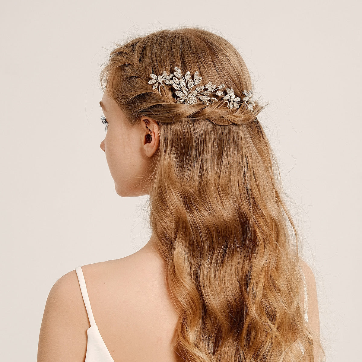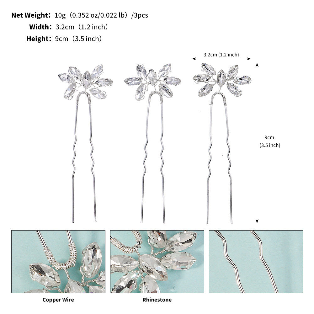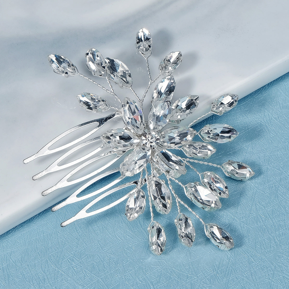 Women's Ethnic Flower Rhinestone Crystal Hair Comb Set