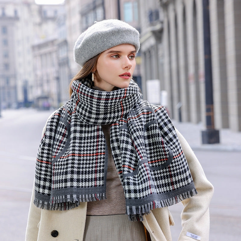 Women's Retro Plaid Tassel Scarf Shawl - Thickened Winter Wrap