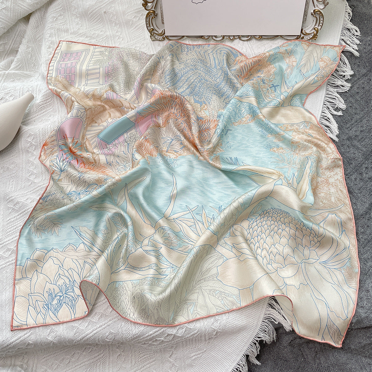 Women's Mulberry Silk Color Block Print Scarf - Luxury Twill Square Scarf for Fall/Winter