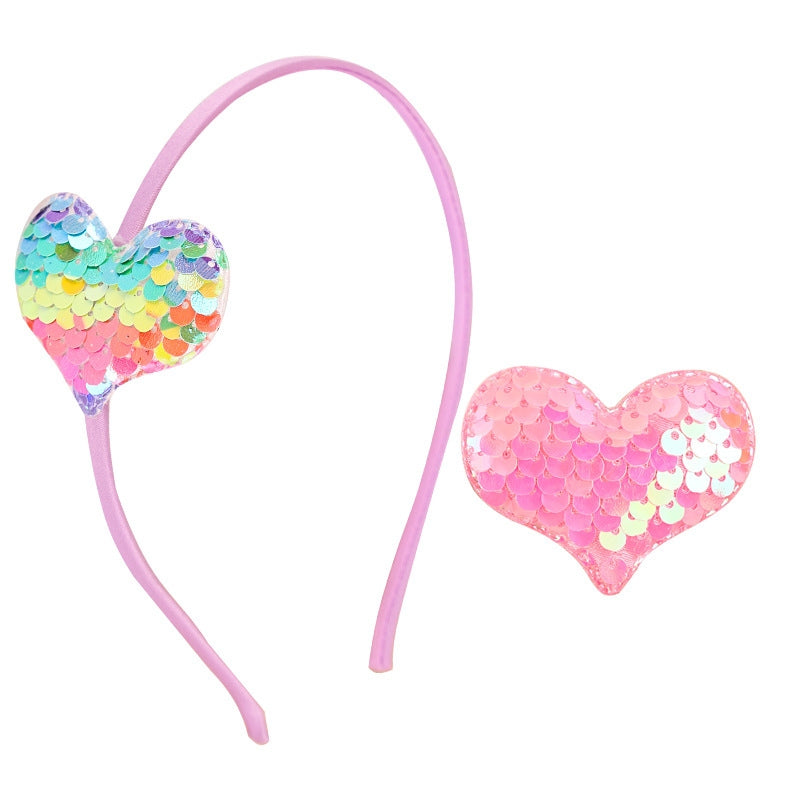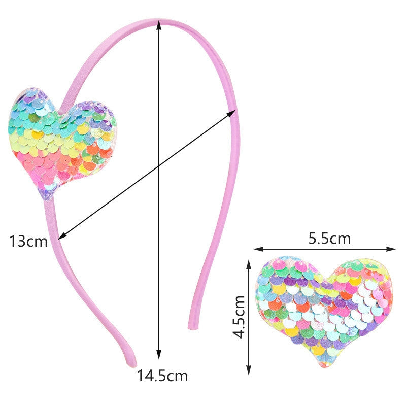 Women's Heart Shape Sequin Hair Clip and Hair Band Set