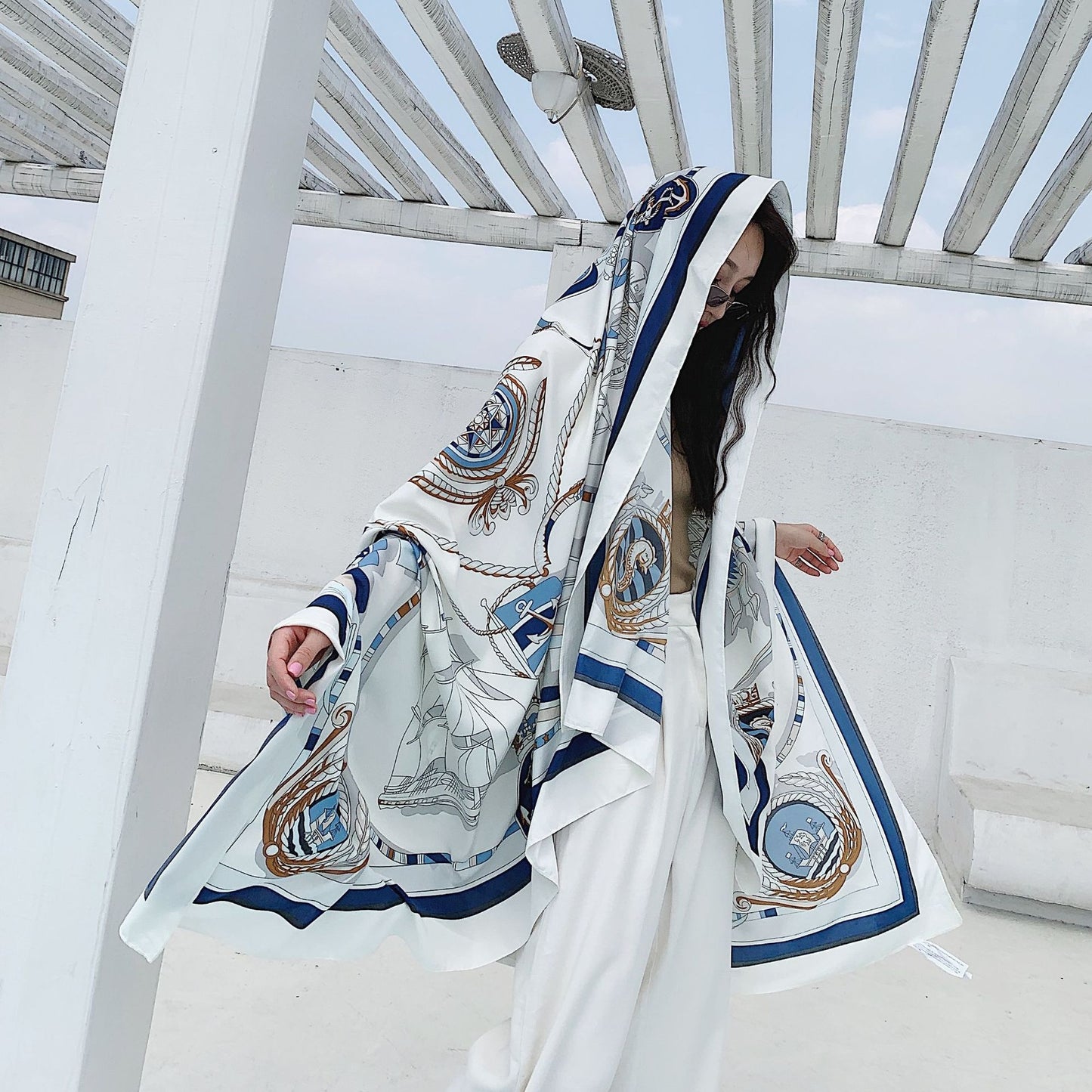 Women's Casual Ship Chains Print Cotton Beach Scarf Shawl Wrap