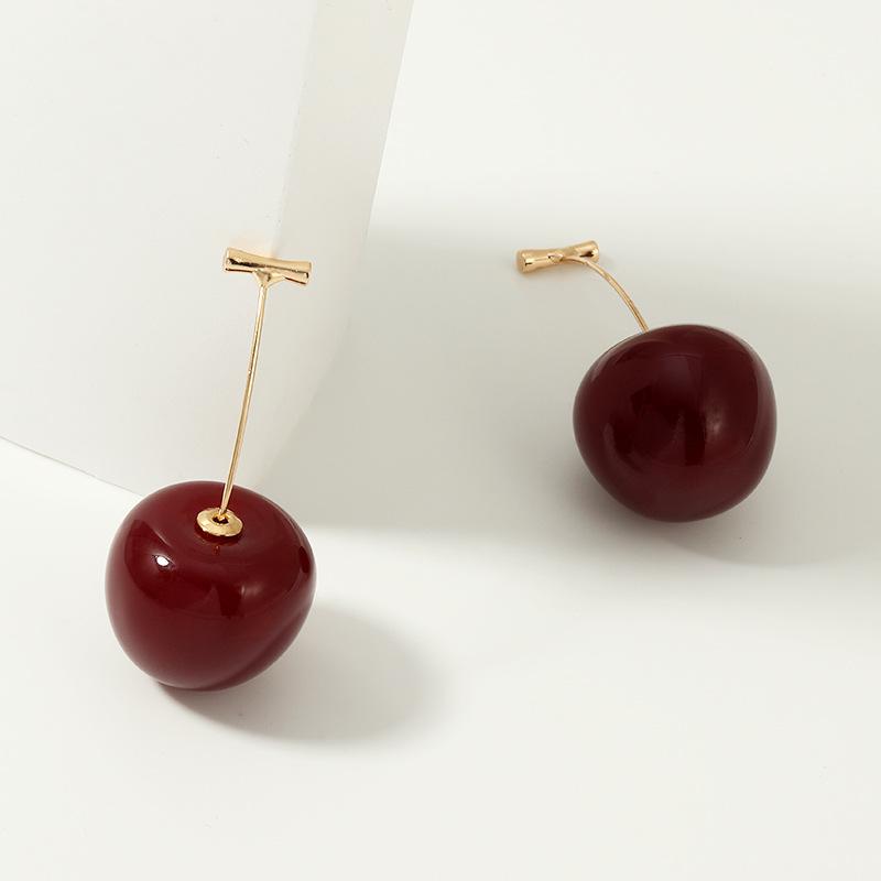 Women's Cherry Resin Drop Earrings - Sweet and Cute Fruit Design