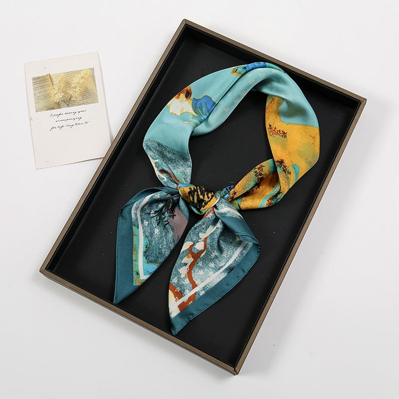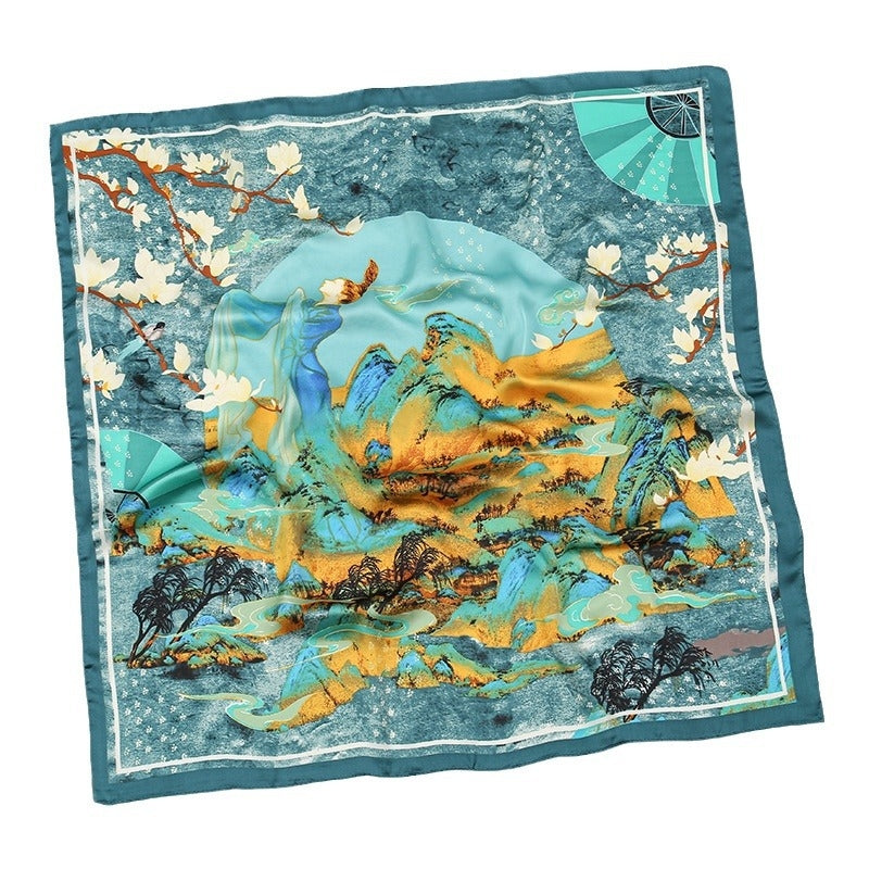 Women's Chinoiserie Floral Mountain Print Silk Scarf 70cm