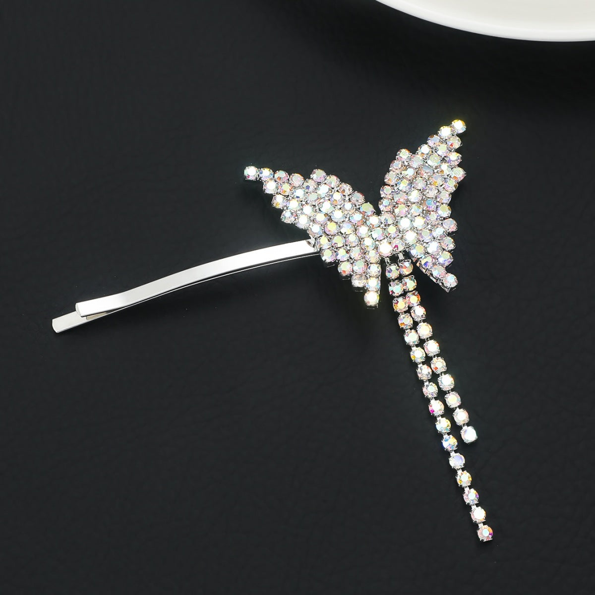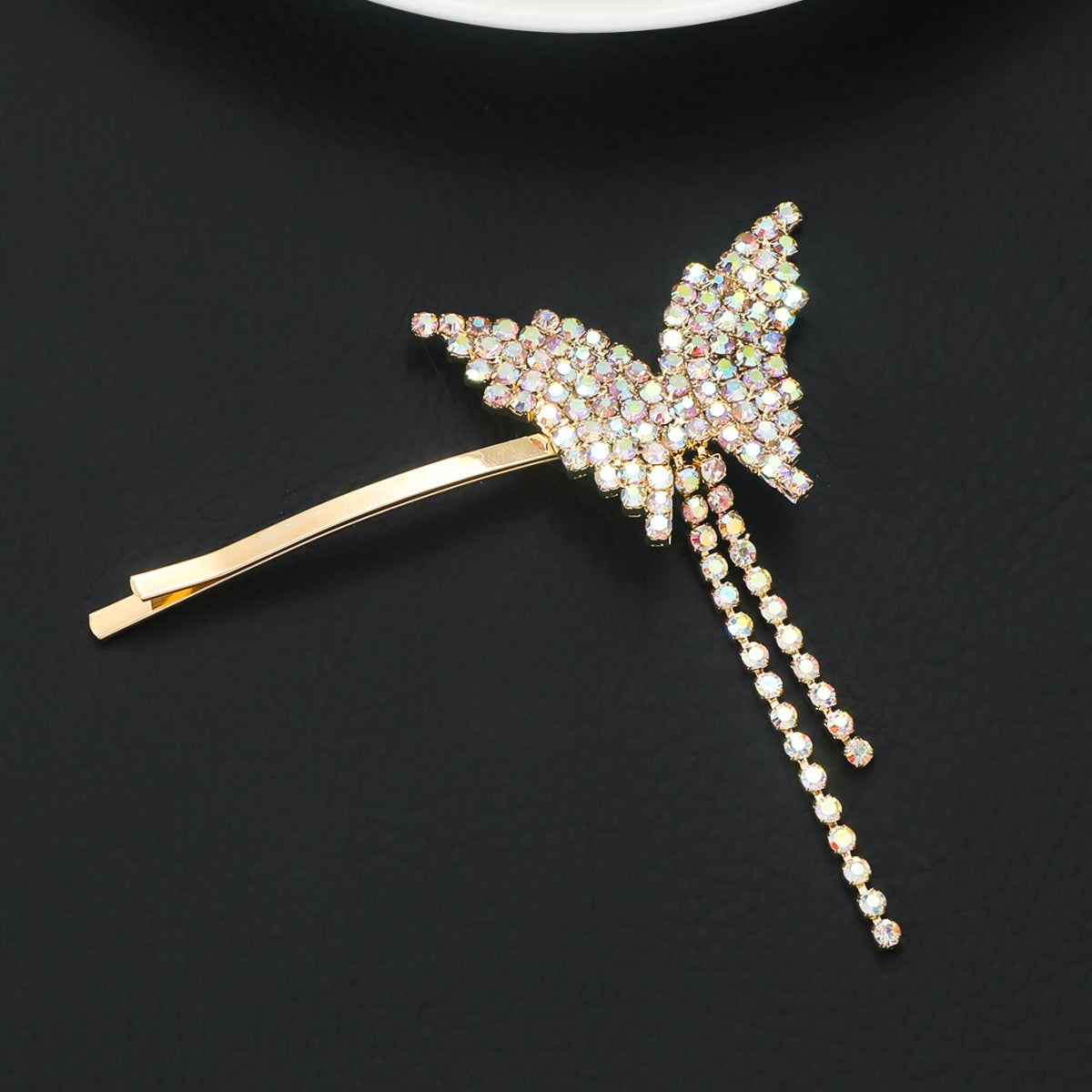Women's Rhinestone Butterfly Tassel Hair Clip - Elegant Metal Plating Hair Accessory