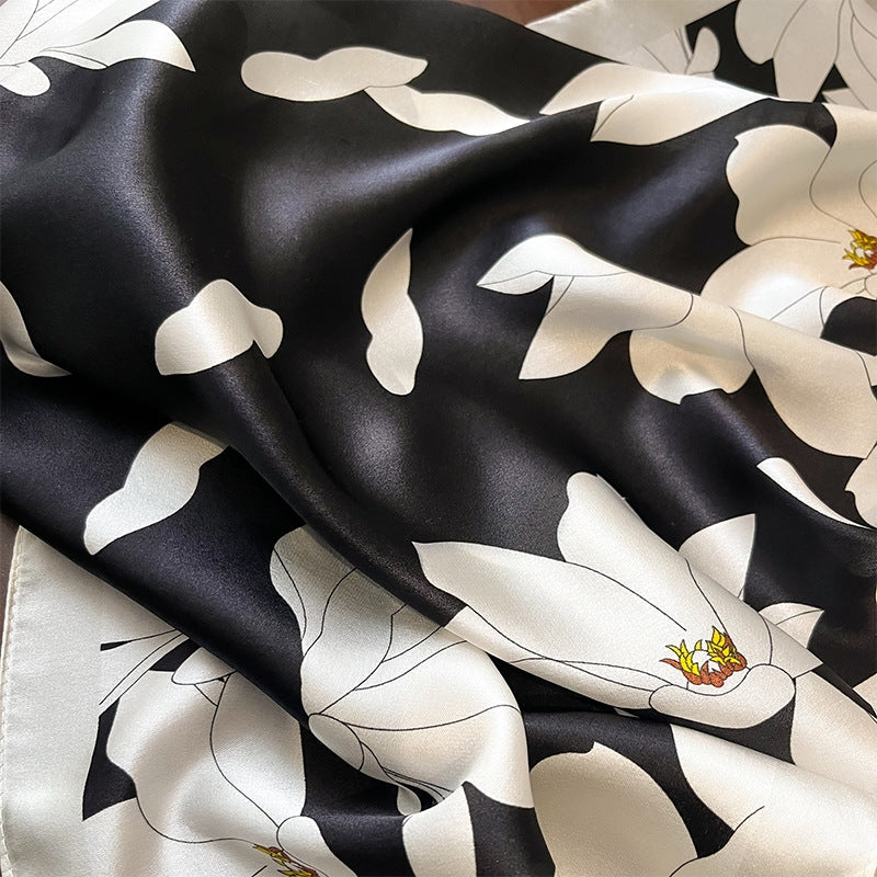 Women's Elegant Floral Silk Satin Scarf - Versatile Square Design