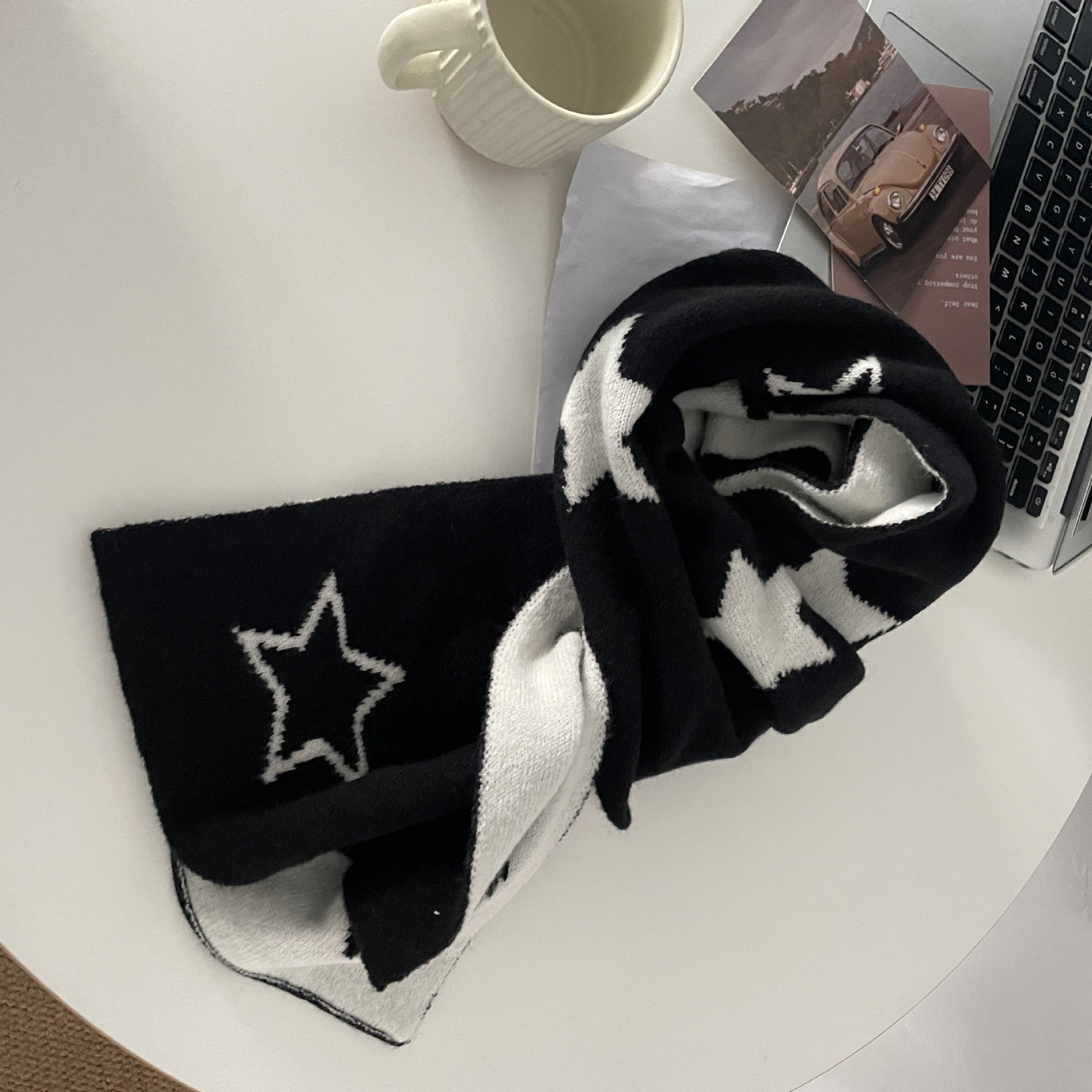Women's Elegant Star Knit Reversible Scarf - Cozy Winter Accessory