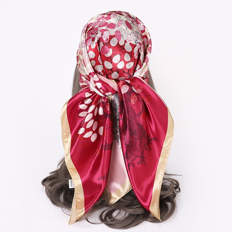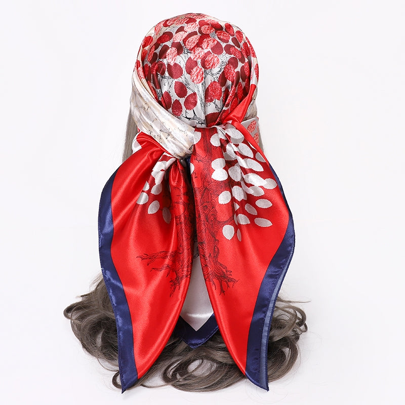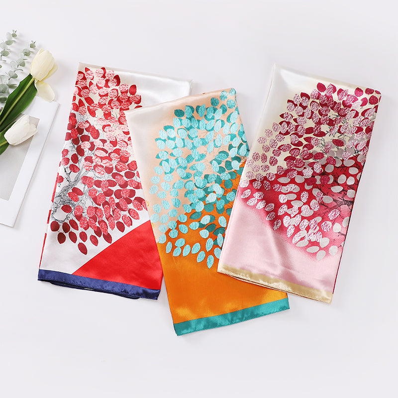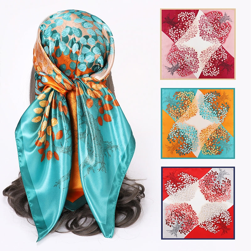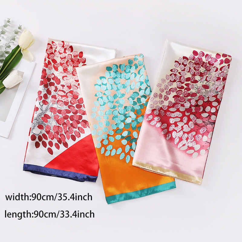 Women's Elegant Streetwear Orange Printed Silk-Like Scarf Kerchief 90cm