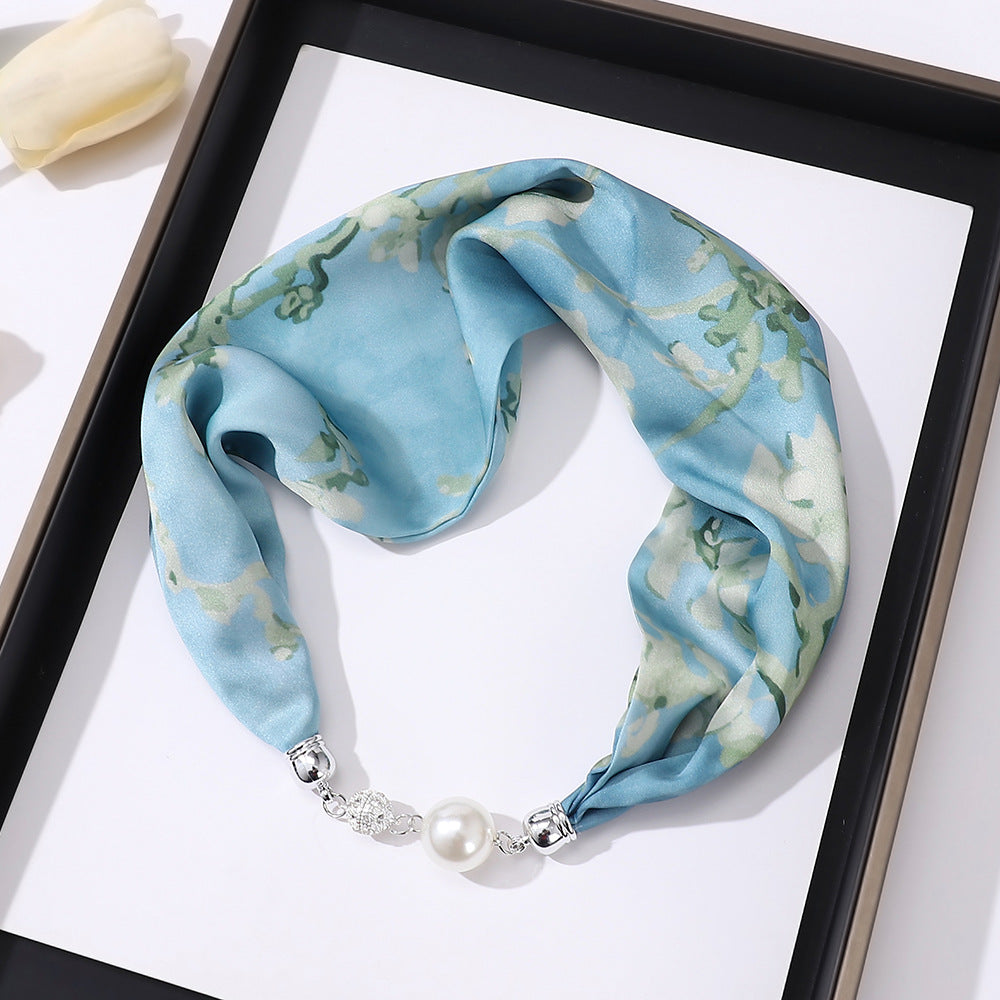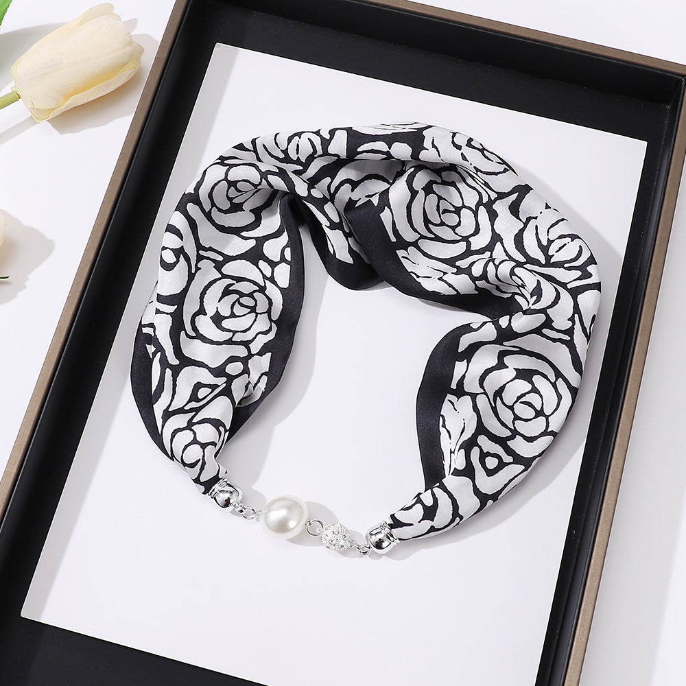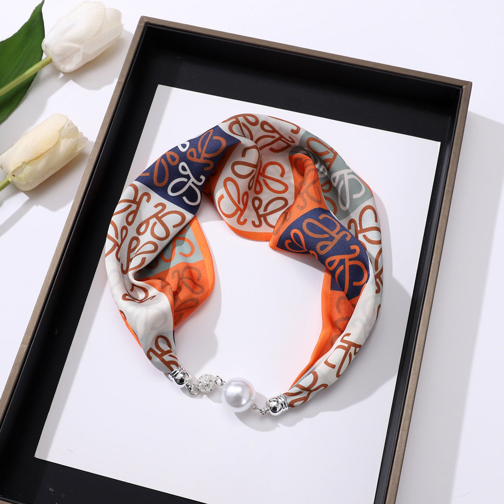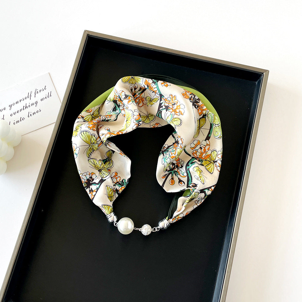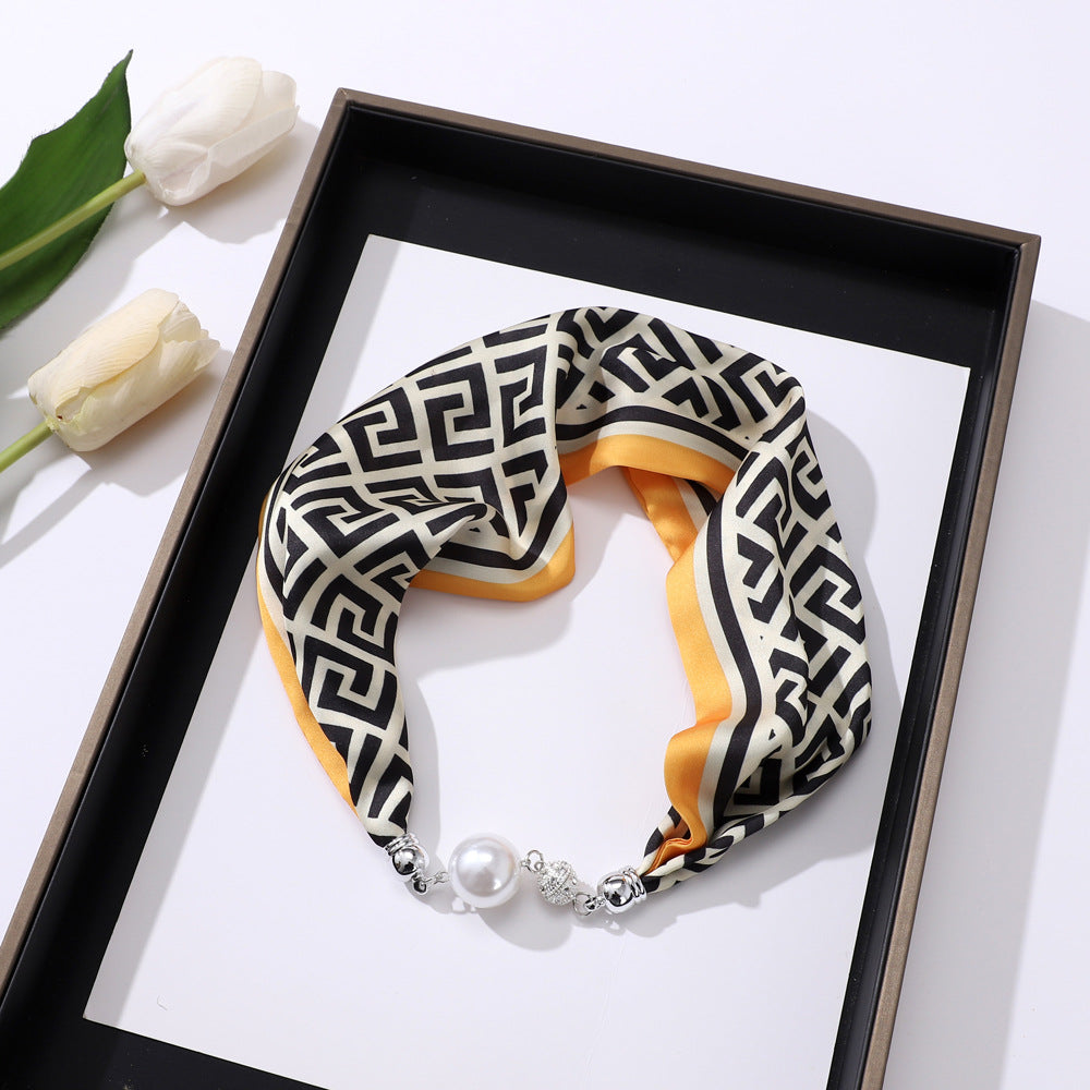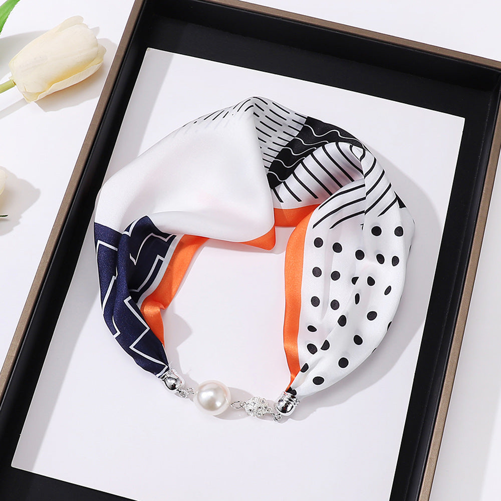 Women's Elegant Silk Print Scarf with Magnetic Letter Design
