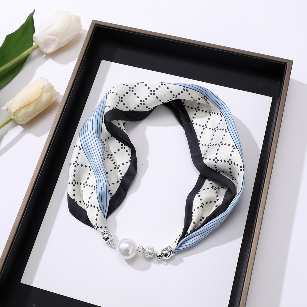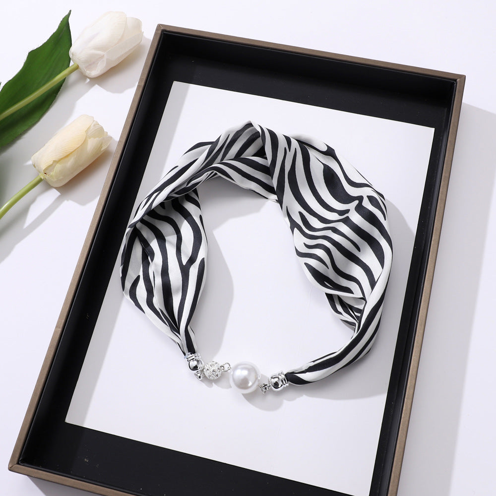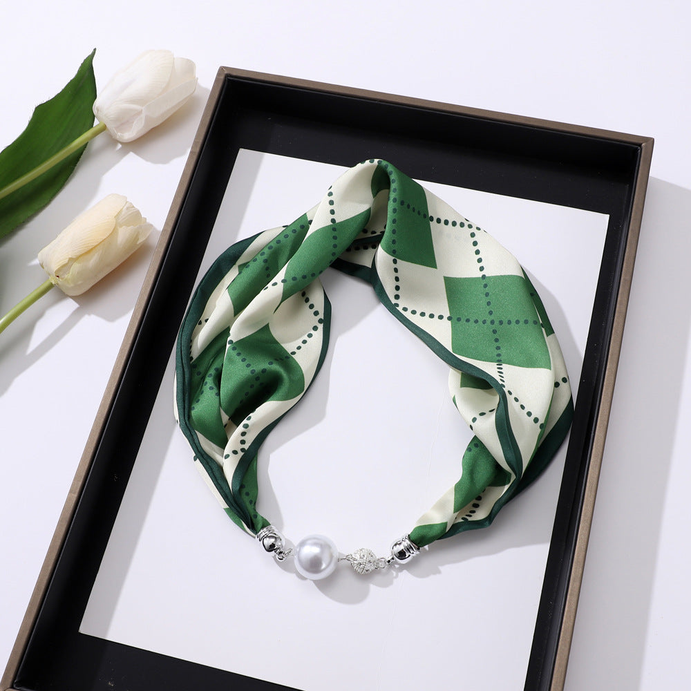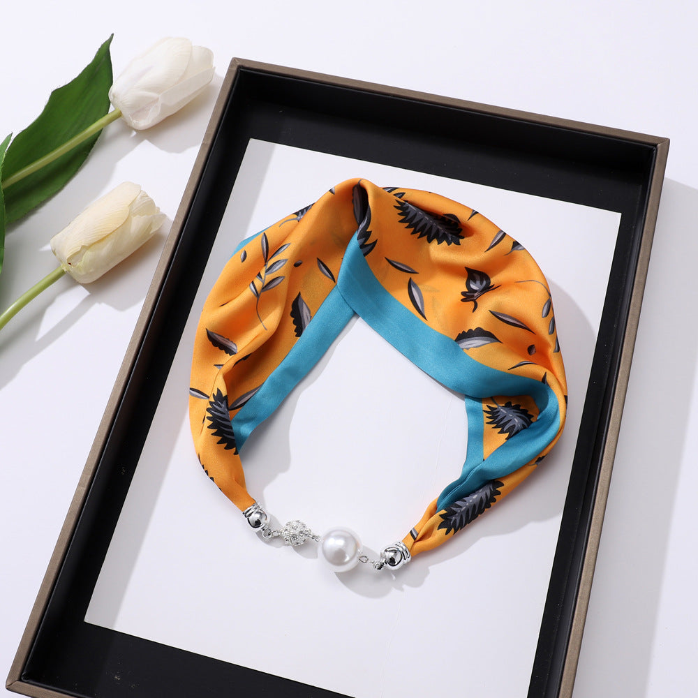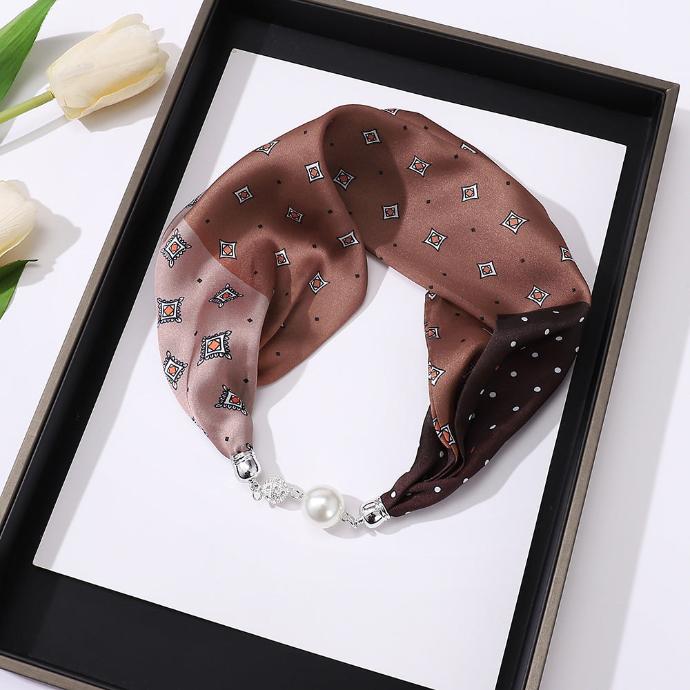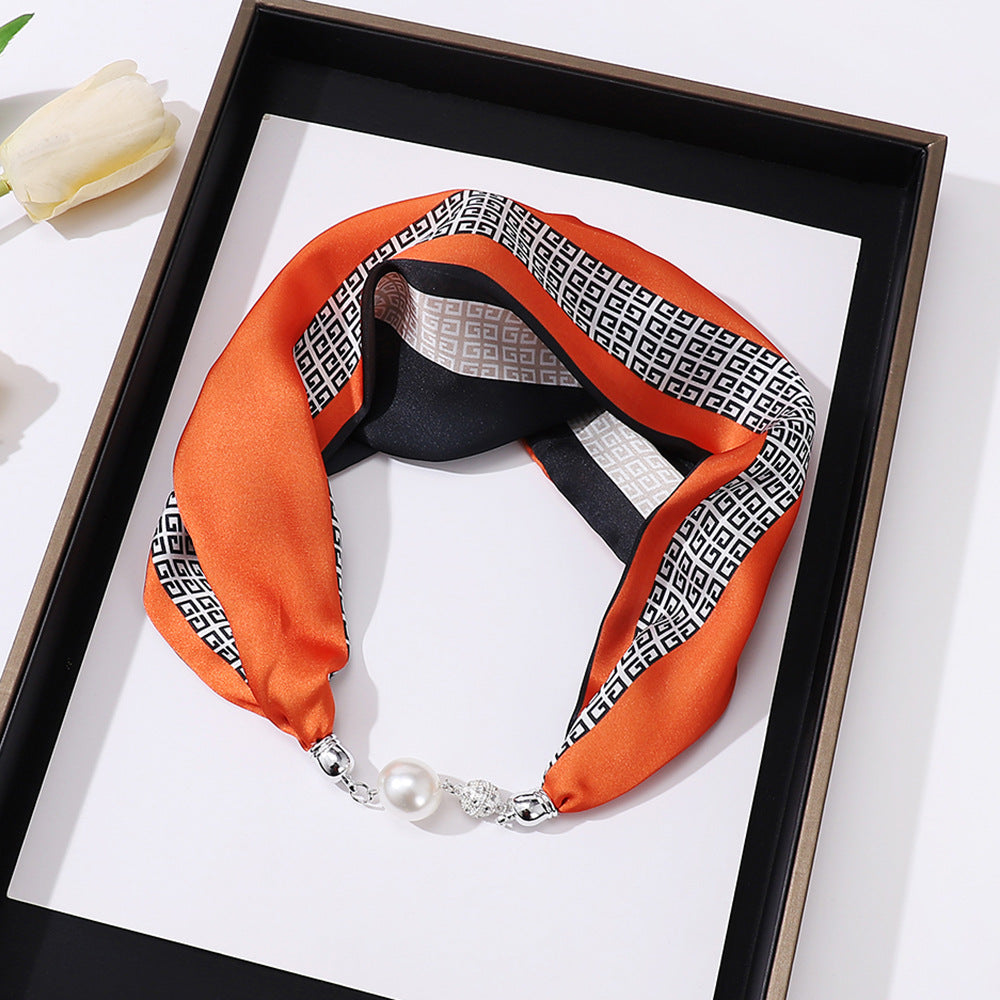 Women's Elegant Silk Print Scarf with Magnetic Letter Design