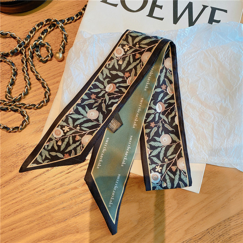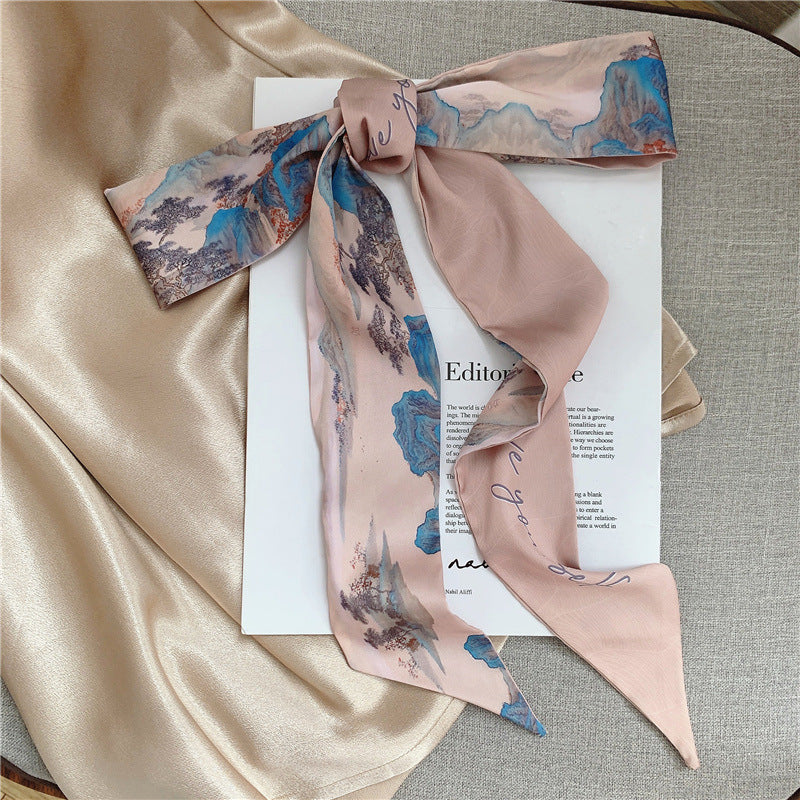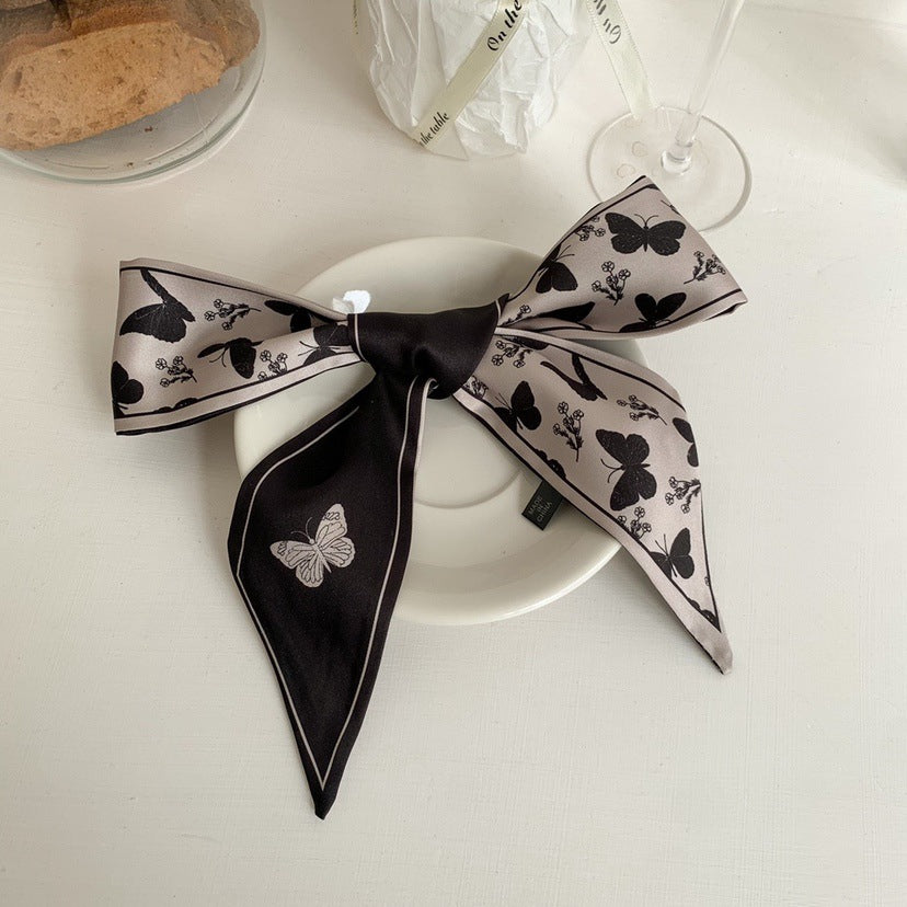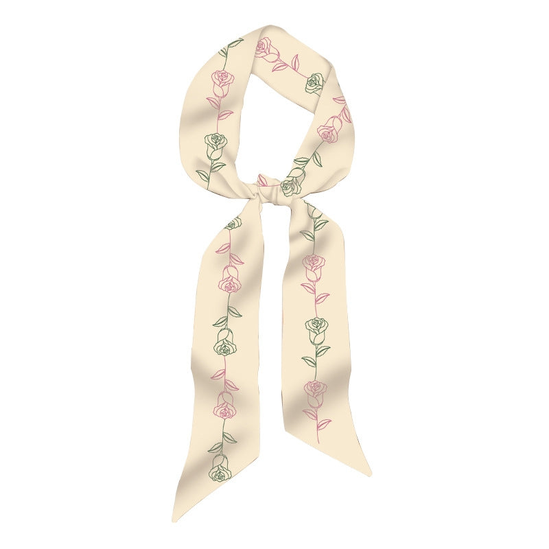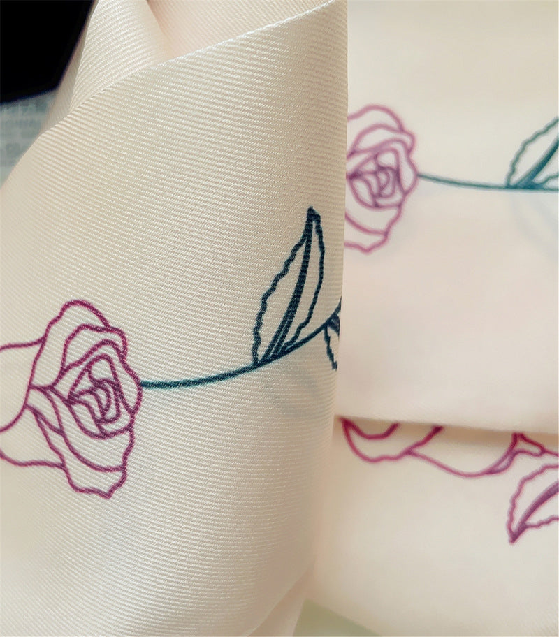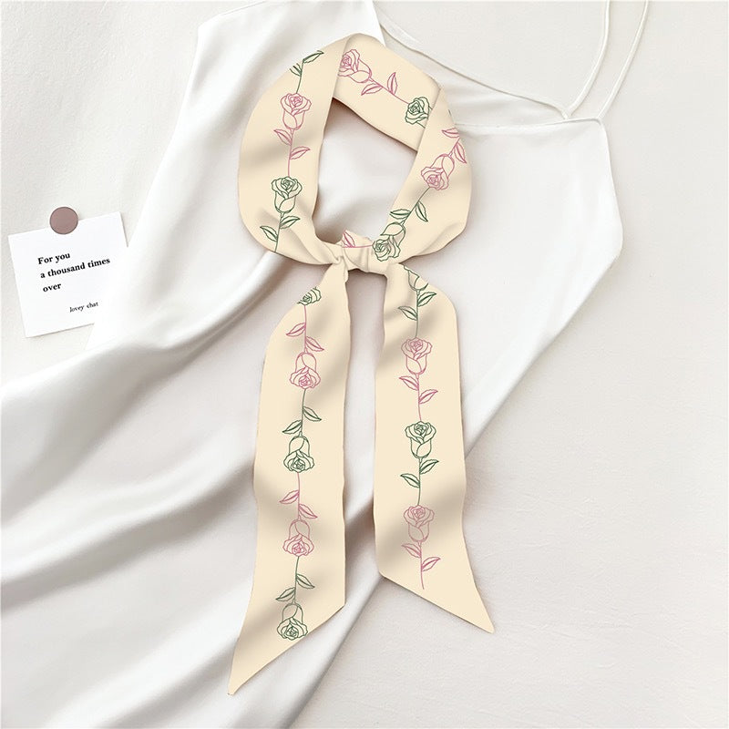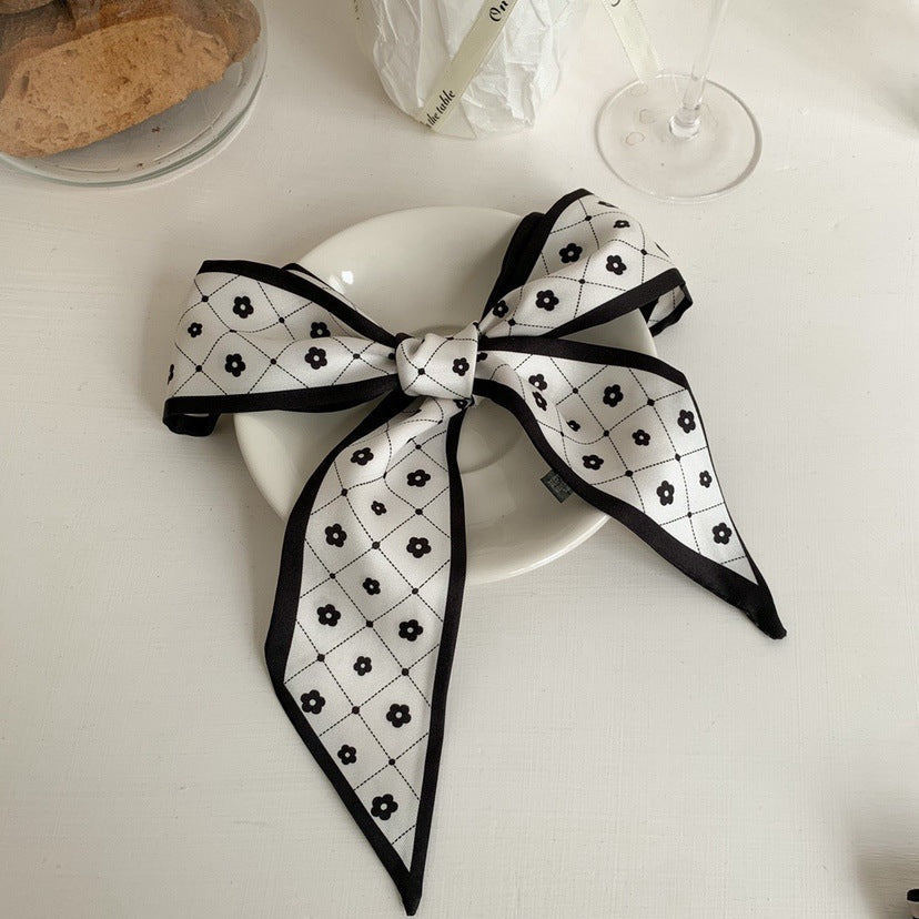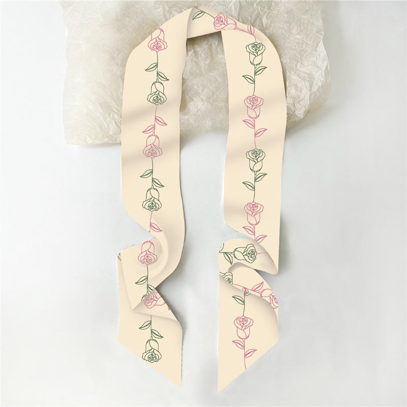 Women's Elegant Rose Print Silk Scarf and Houndstooth Floral Hair Ribbon