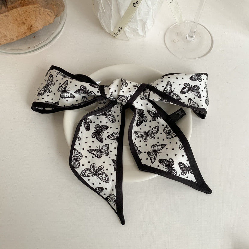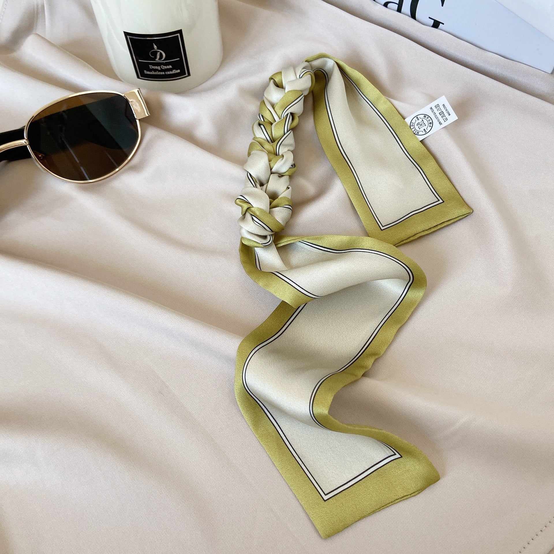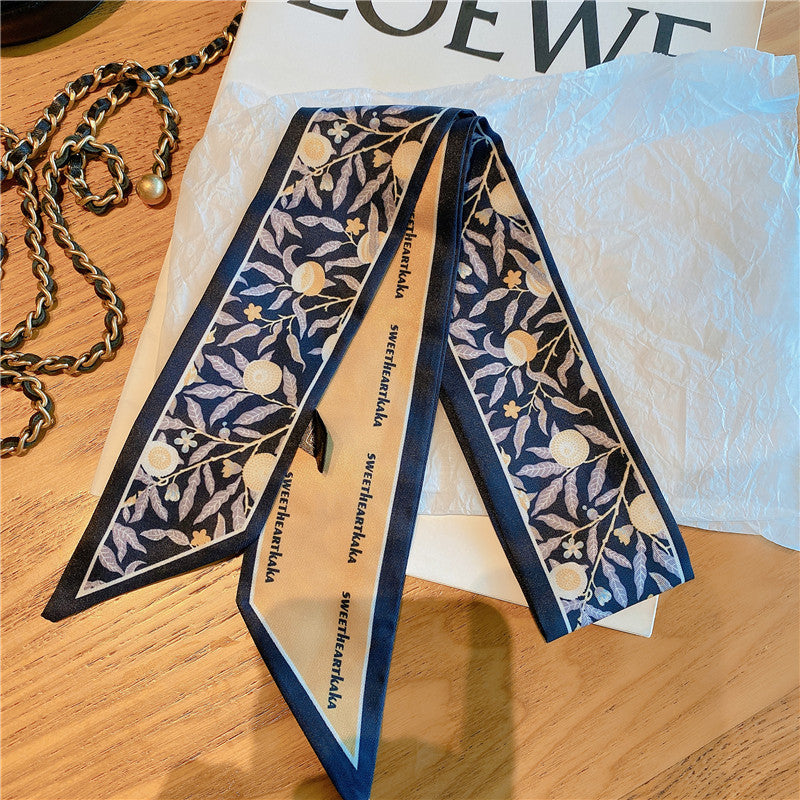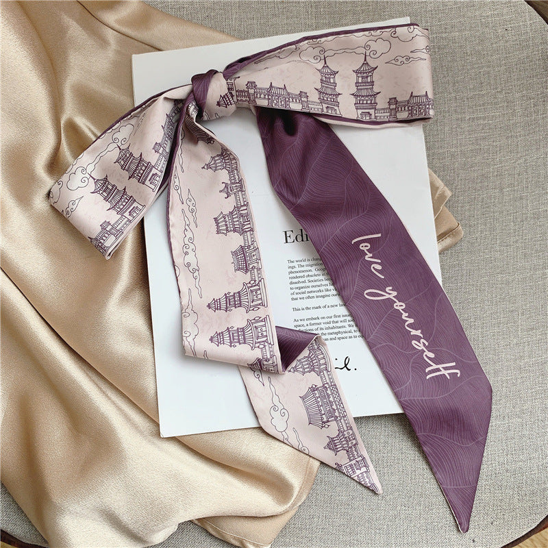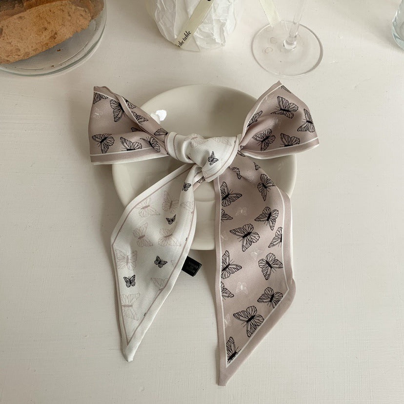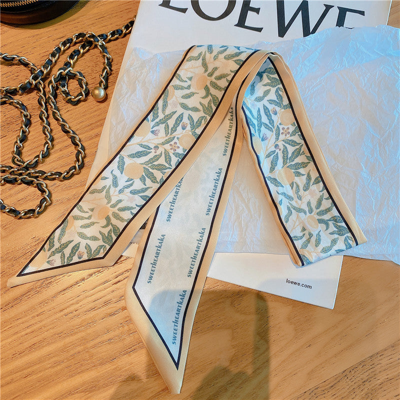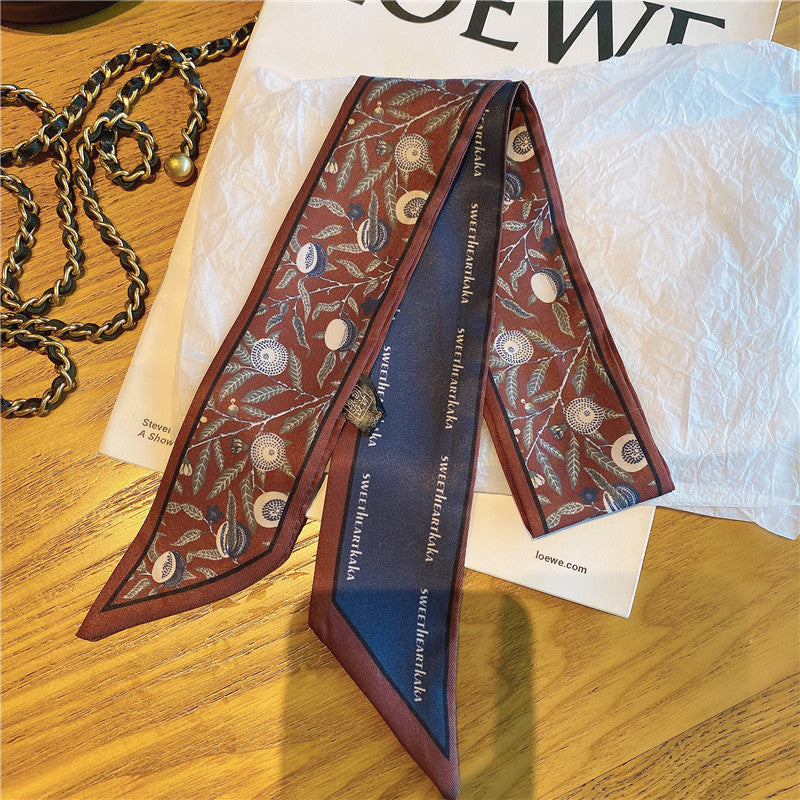 Women's Elegant Rose Print Silk Scarf and Houndstooth Floral Hair Ribbon