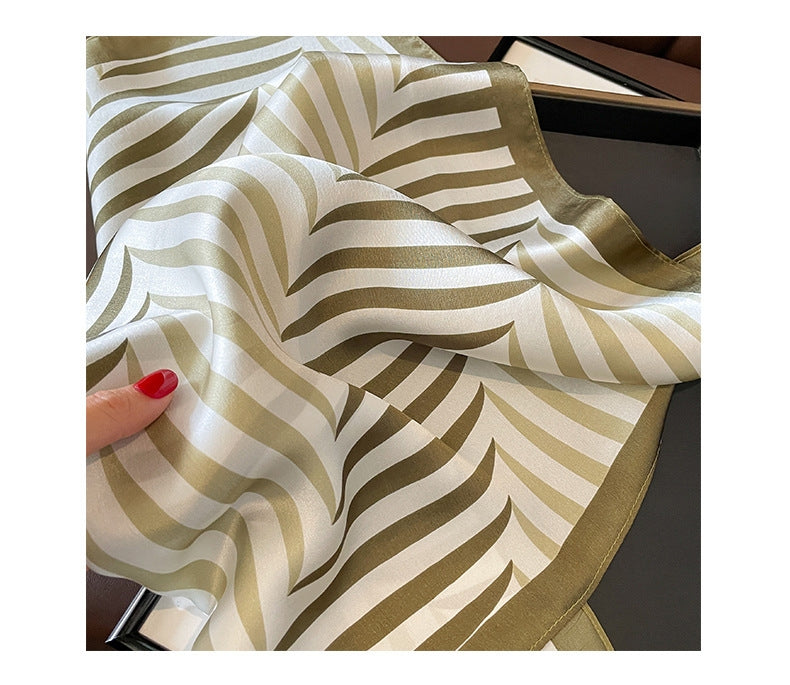 Women's Elegant Stripe Silk Scarf - Green Square Design