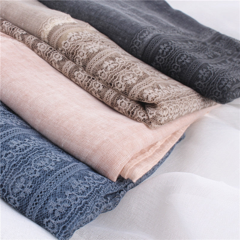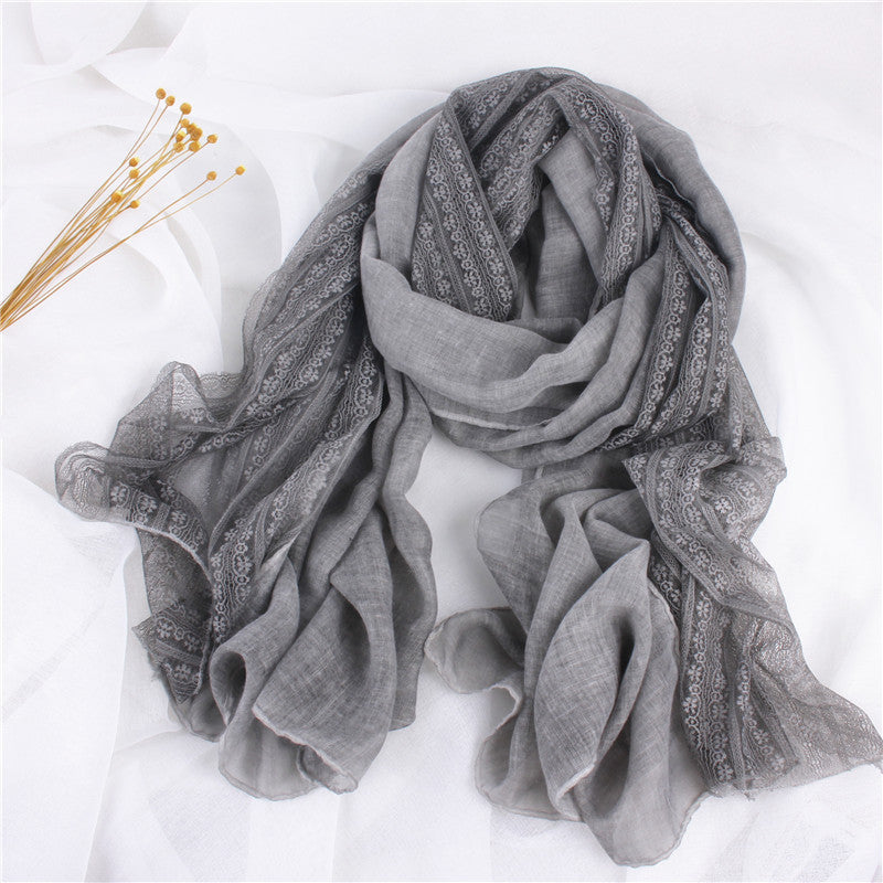 Women's Elegant Lace Trim Cotton Linen Scarf Shawl