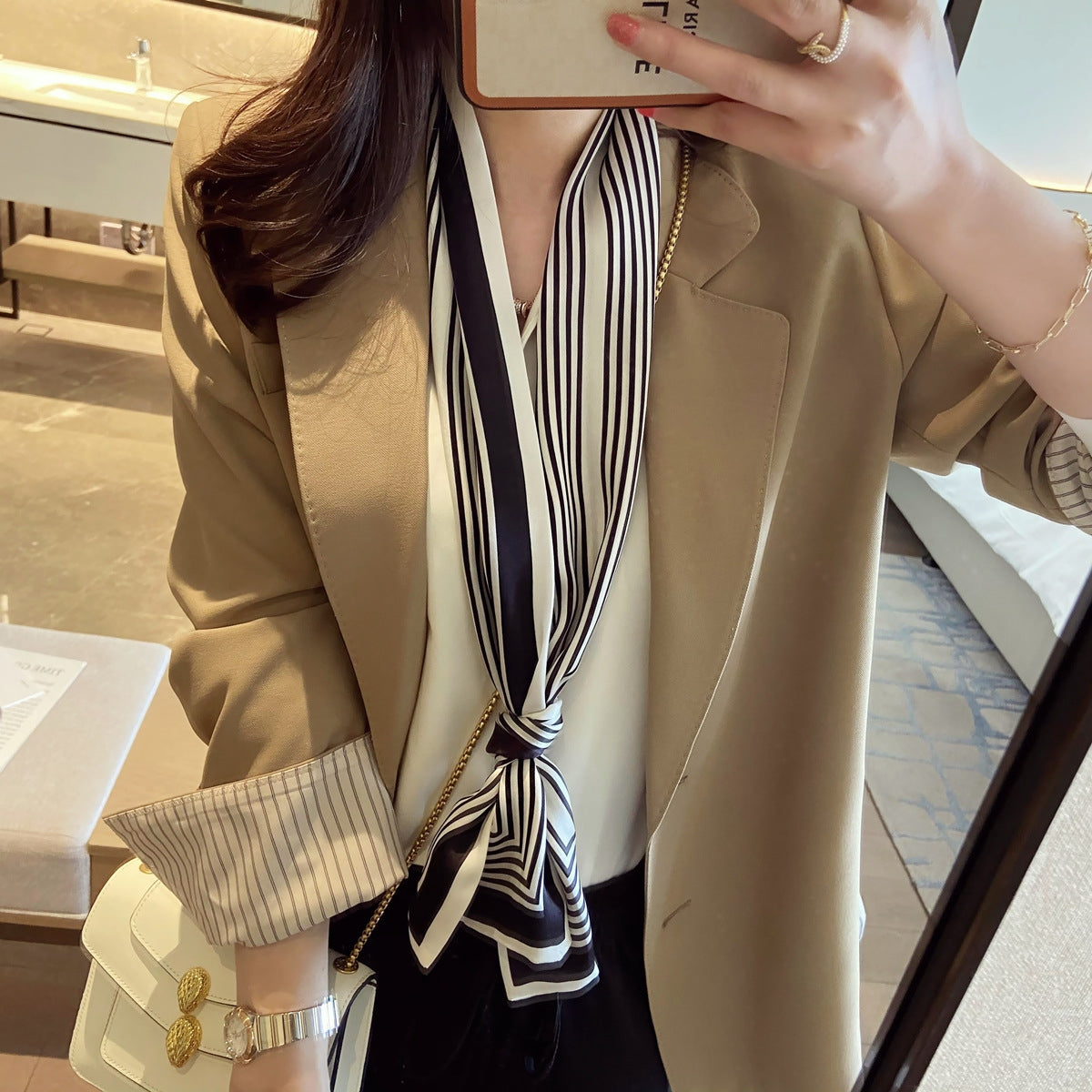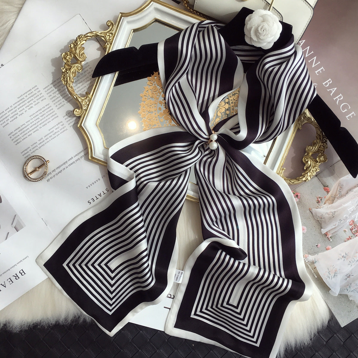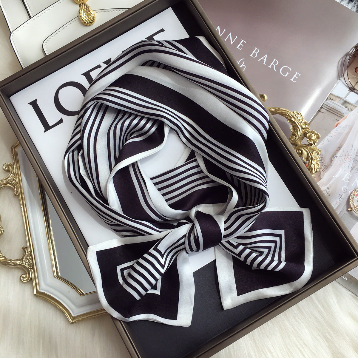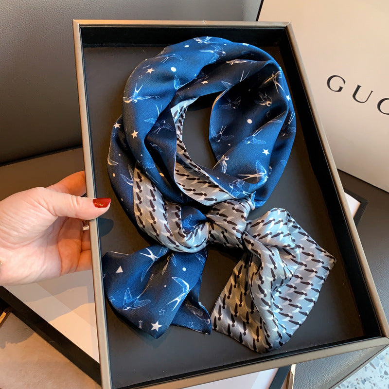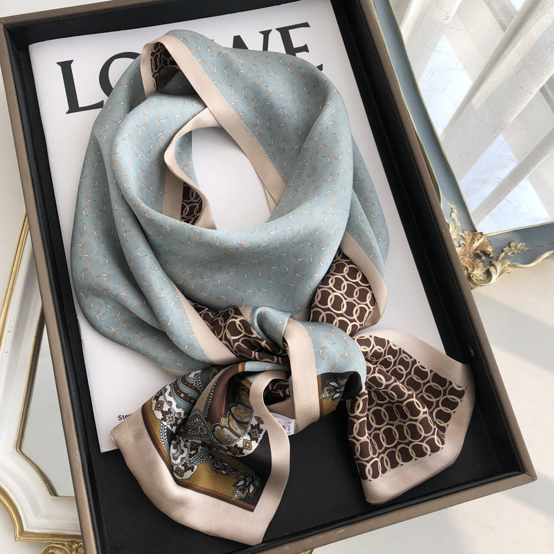 Women's Elegant Mulberry Silk Scarf with Striped and Decorative Design