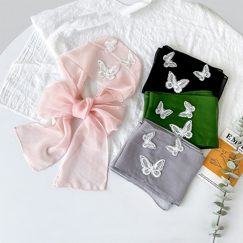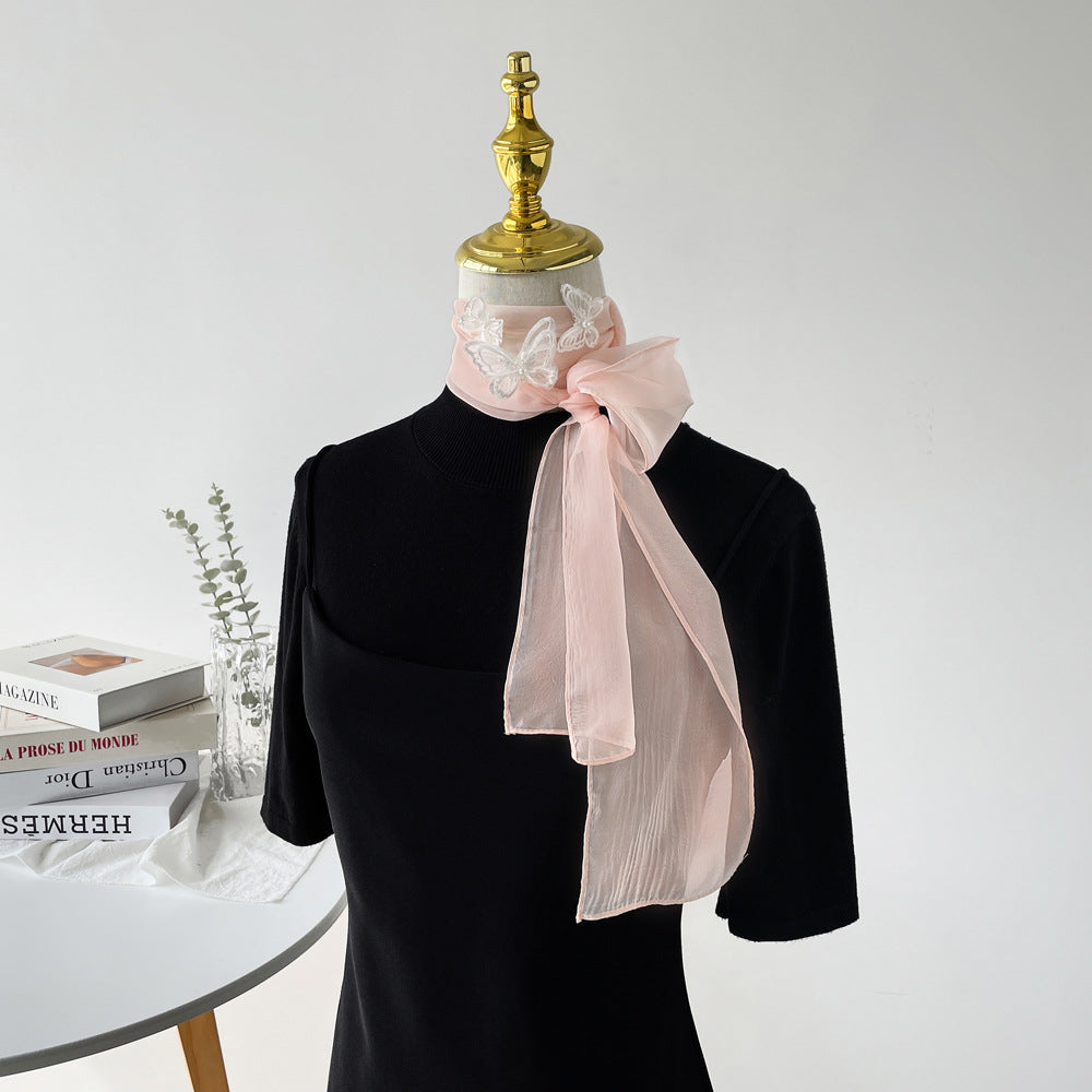 Women's Elegant Butterfly Bow Lace Silk Scarf Kerchief