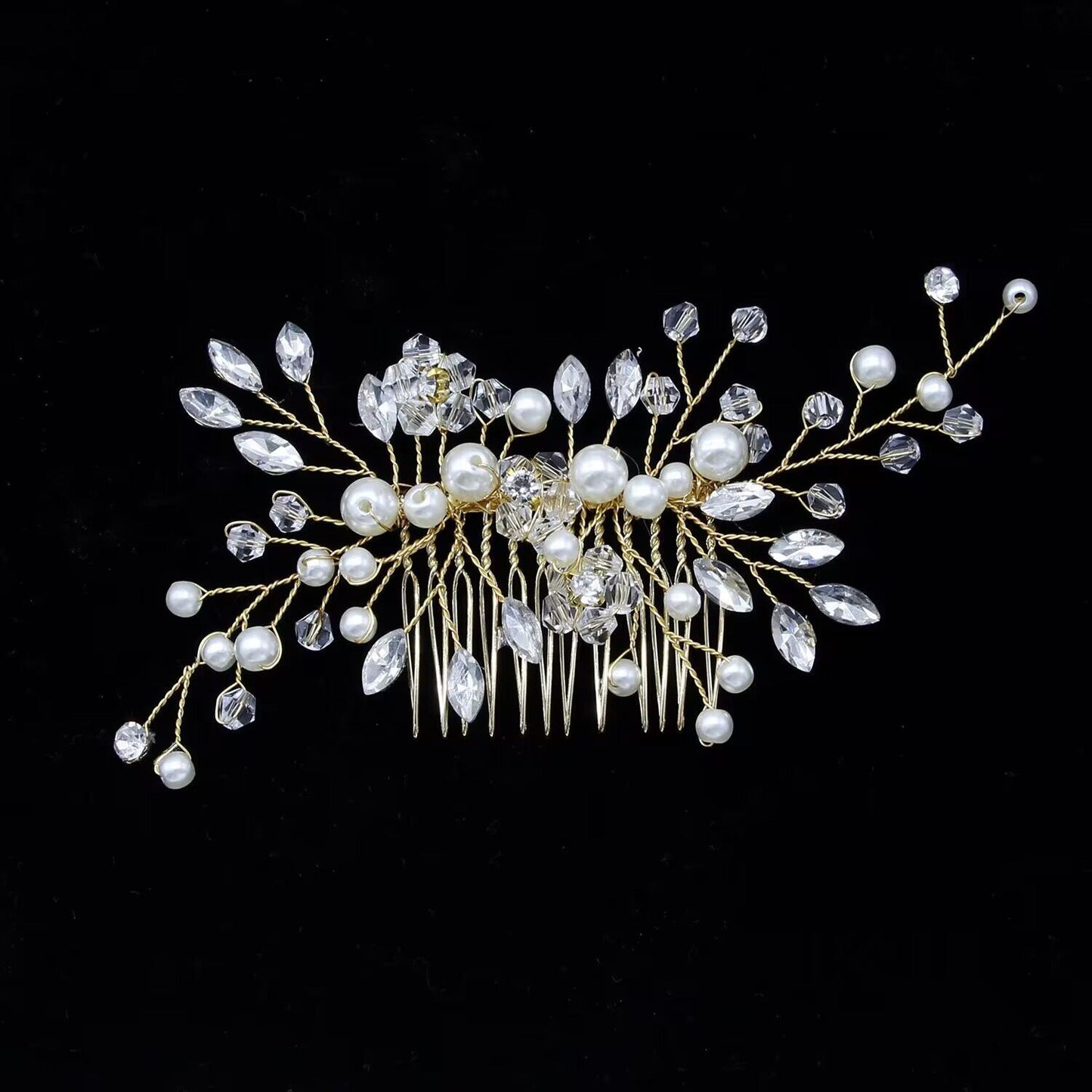 Women's Elegant Pearl and Crystal Hair Comb Bridal Accessory