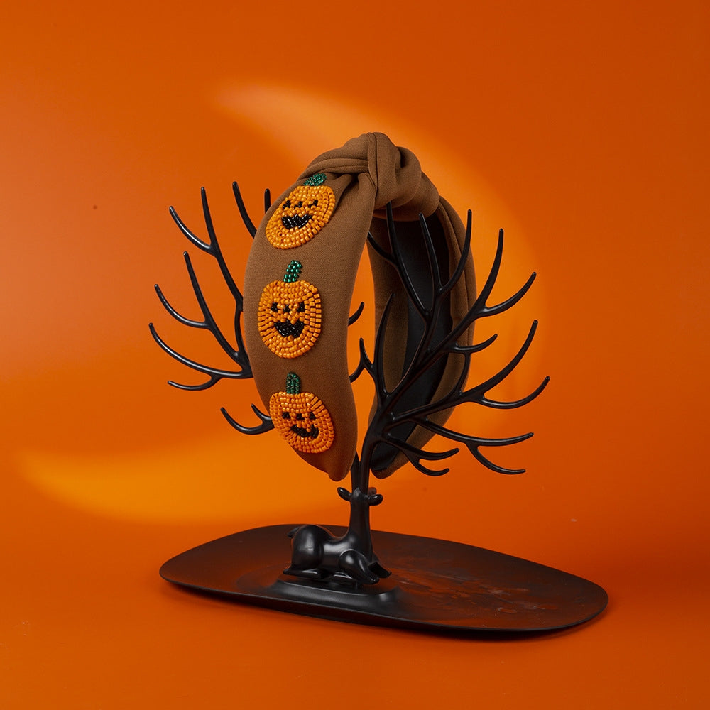 Women's Retro Halloween Pumpkin Ghost Beaded Hairband