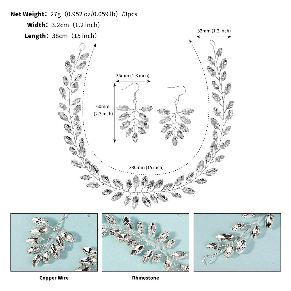 Women's Leaf Rhinestone Copper Bridal Headpiece and Earring Set