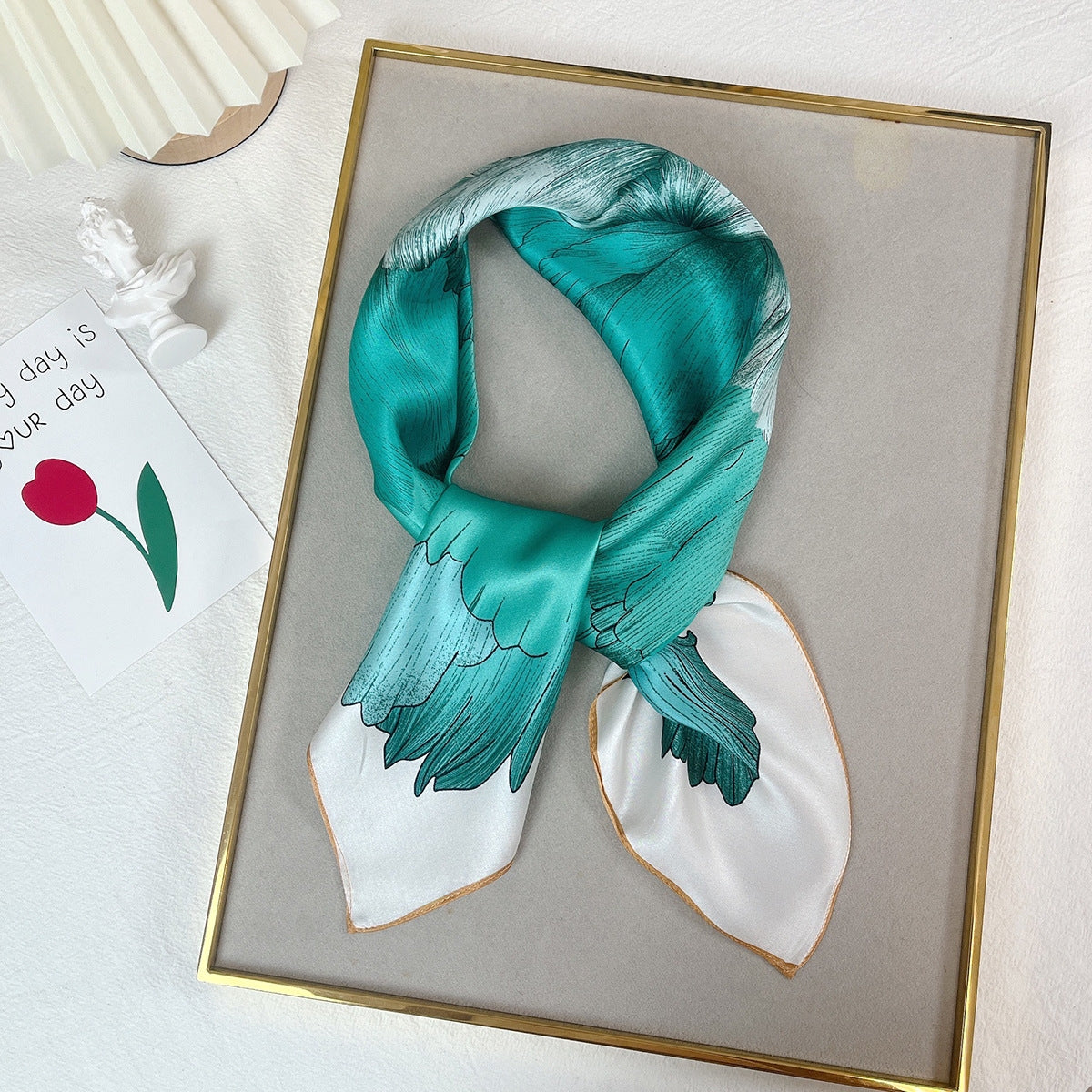 Women's Vintage Floral Silk Scarf - Elegant Square Neck Accessory