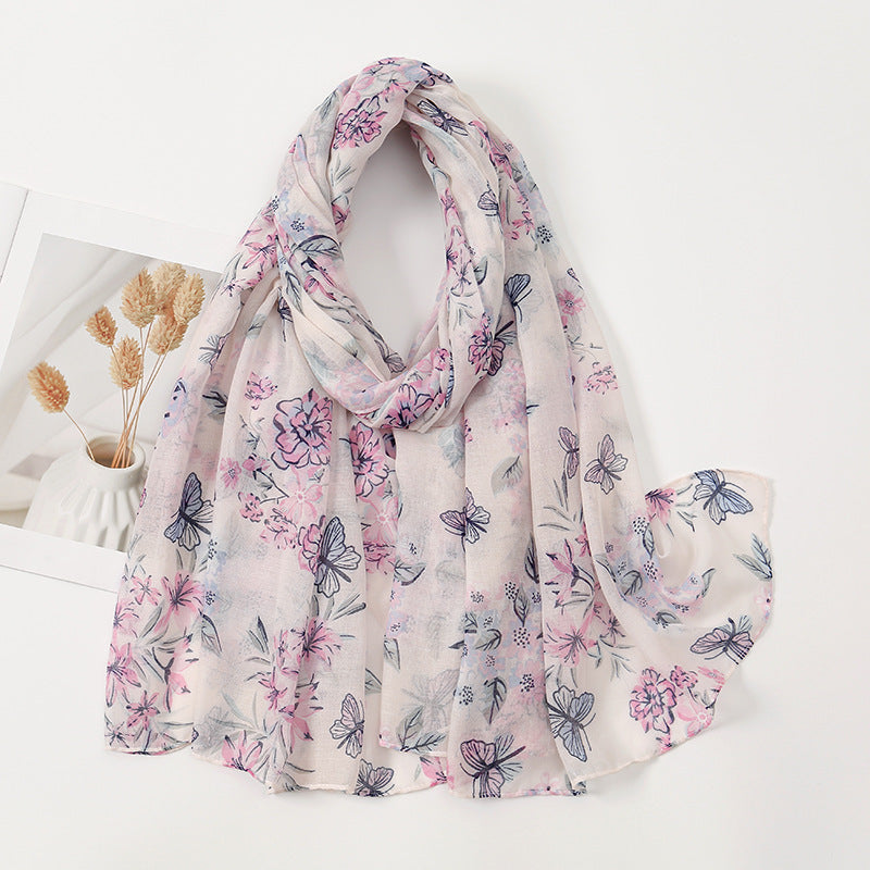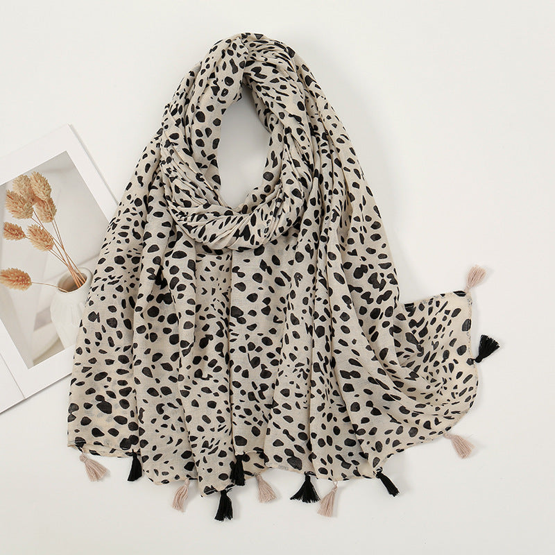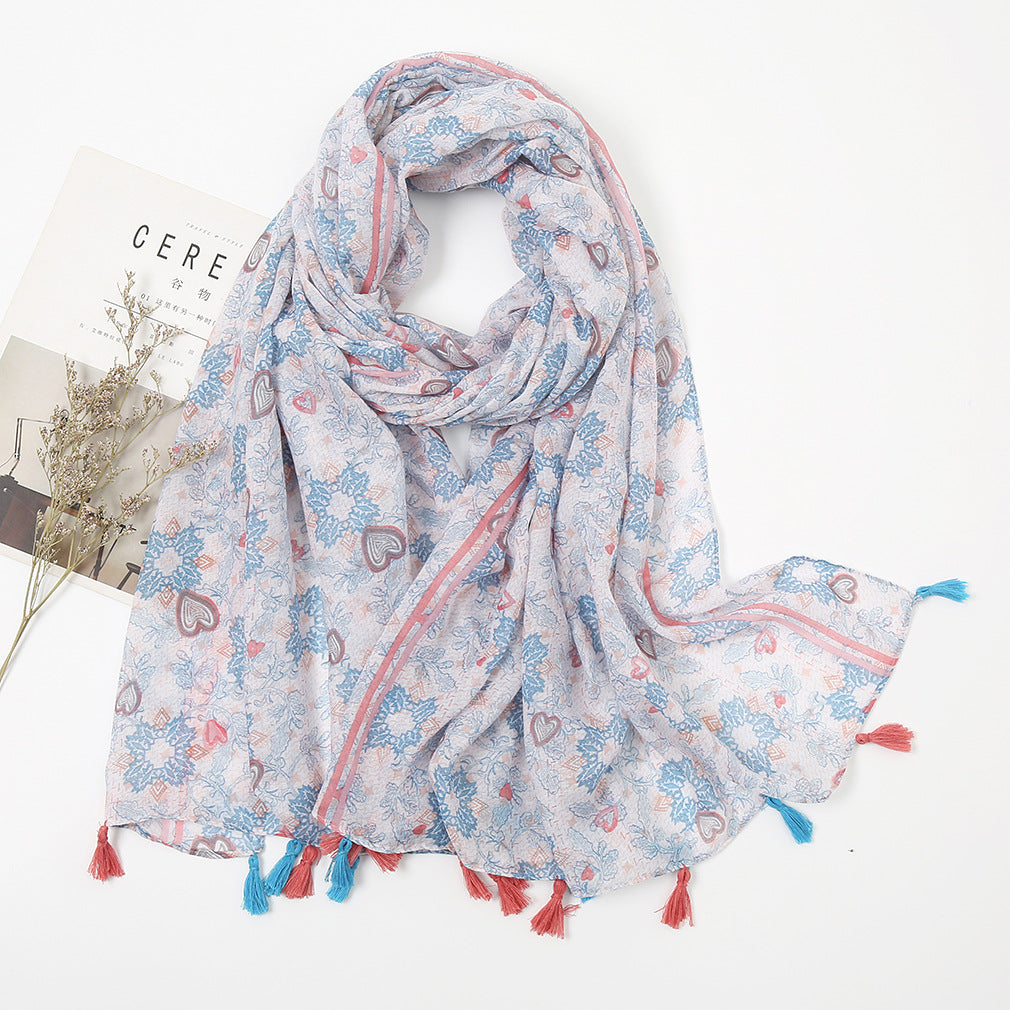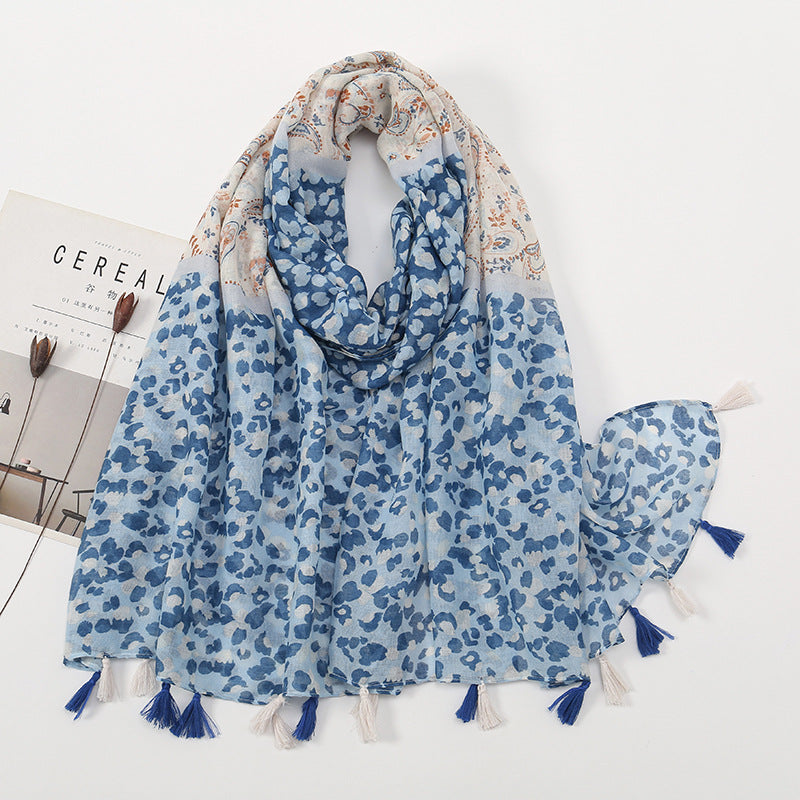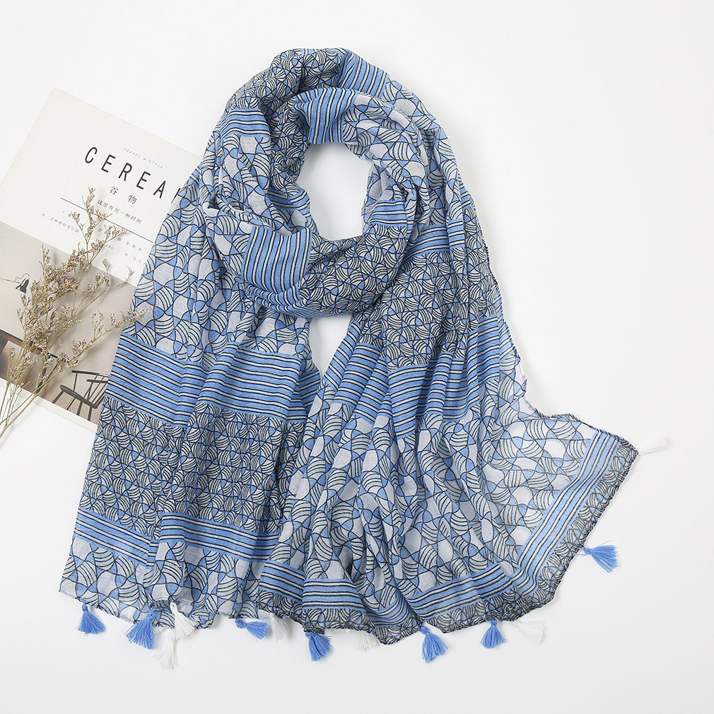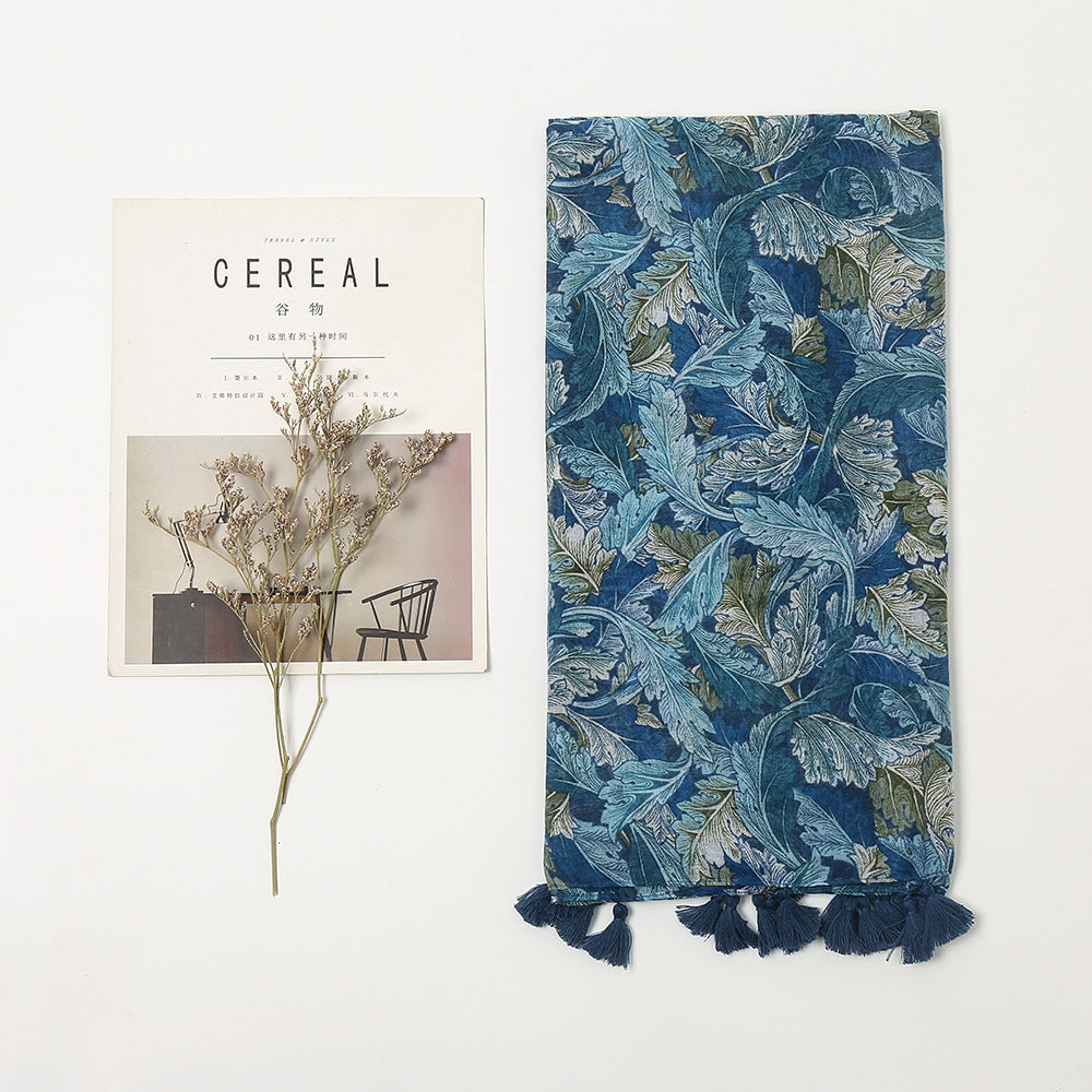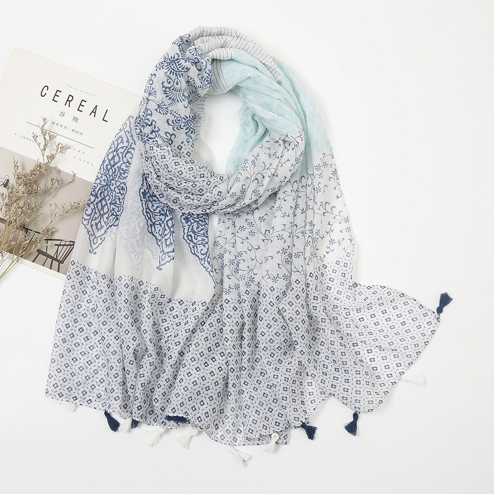 Women's Vintage Bohemian Floral Cotton Linen Print Scarf with Tassels