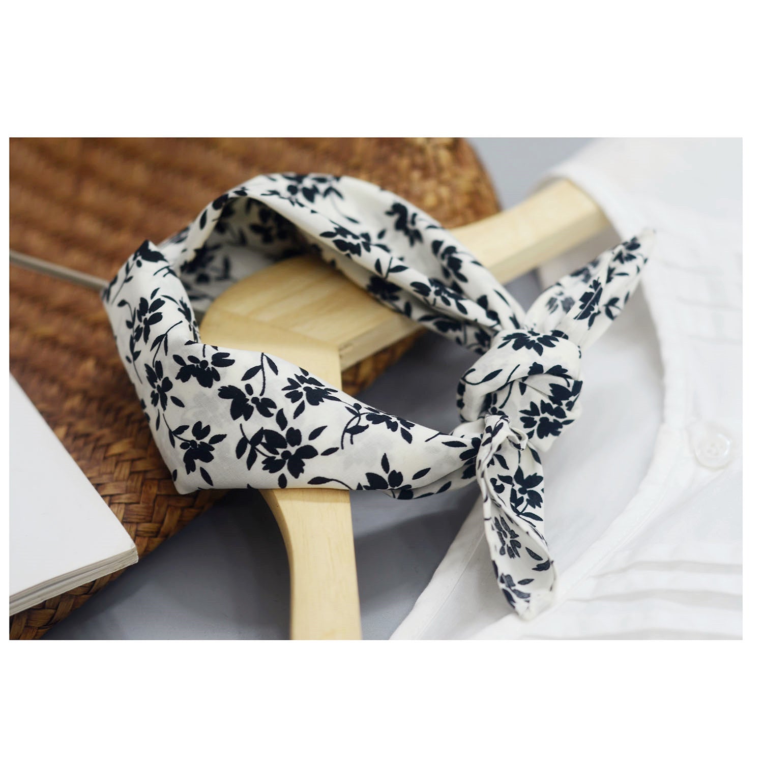 Women's Color Block Floral Cotton Scarf and Headband