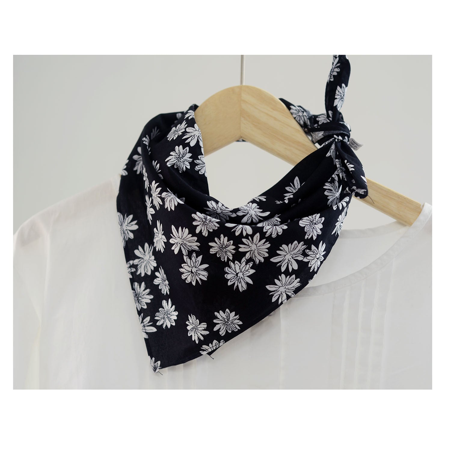 Black floral scarf / 55-55cm