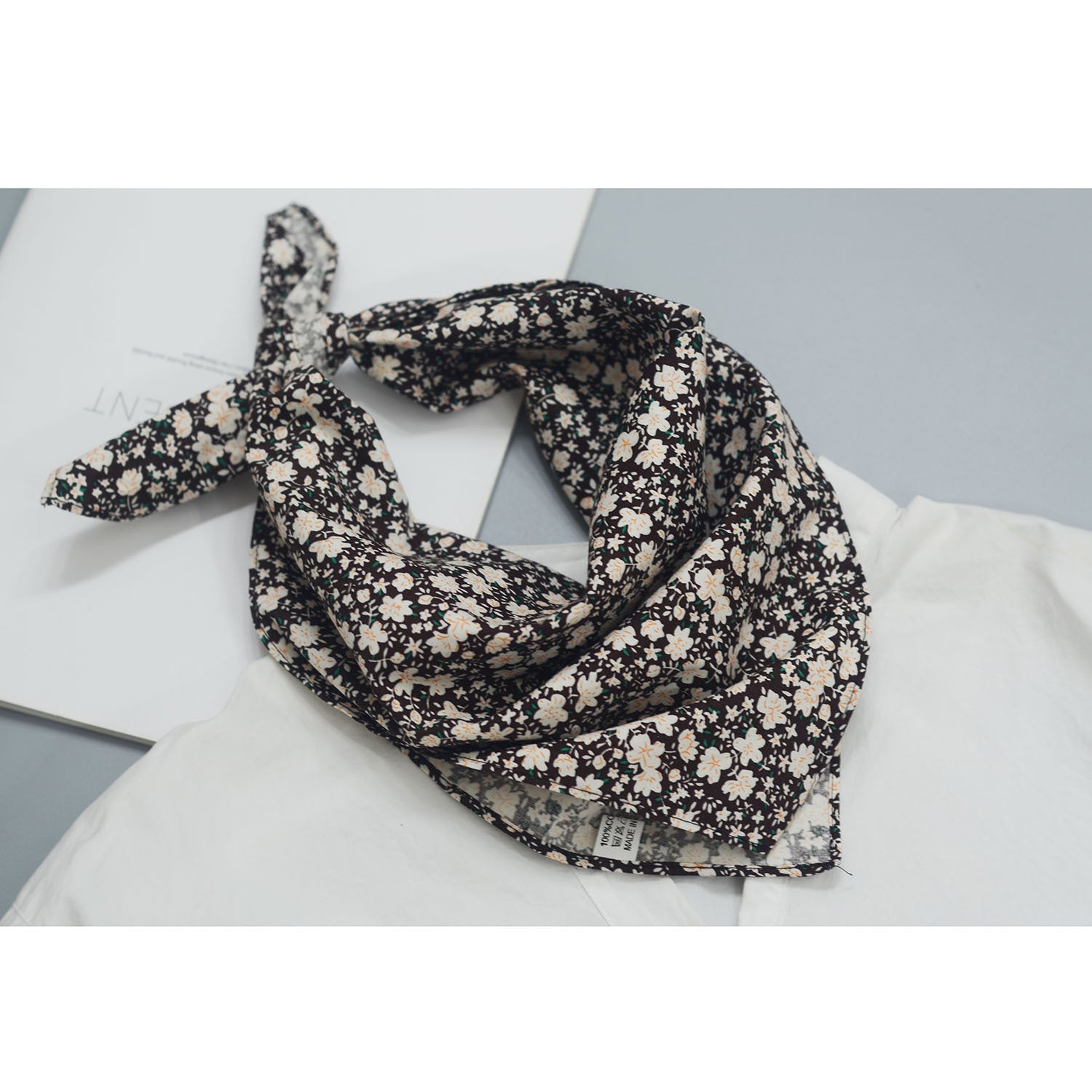 Four-leaf black square scarf / 55-55cm