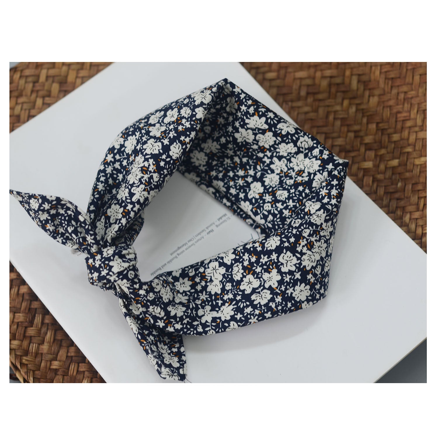 Navy blue floral scarf / 55-55cm
