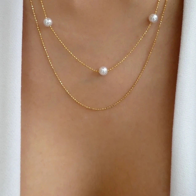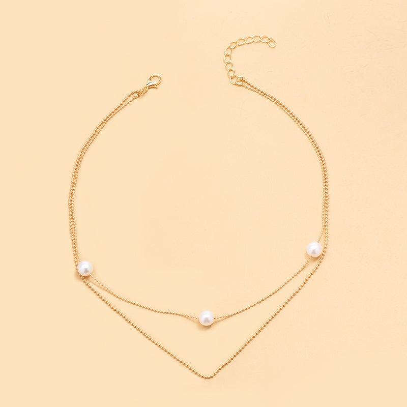 Women's Fashion Layered Imitation Pearl Alloy Necklace