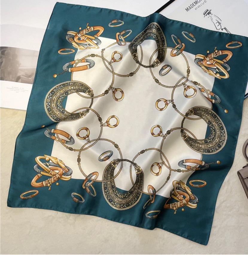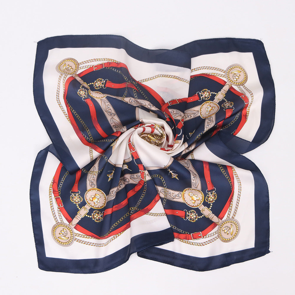Women's Streetwear Chain Print Satin Silk Scarf 70cm Square Headscarf Accessory
