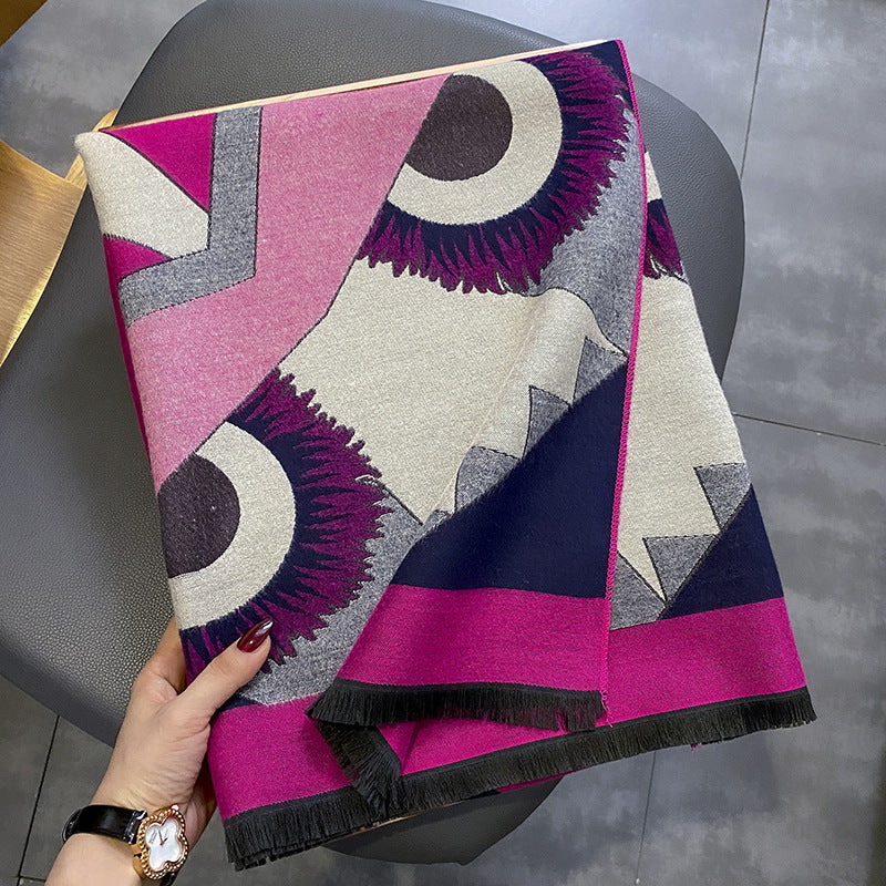 Women's Geometric Color Block Imitation Cashmere Tassel Scarf Shawl