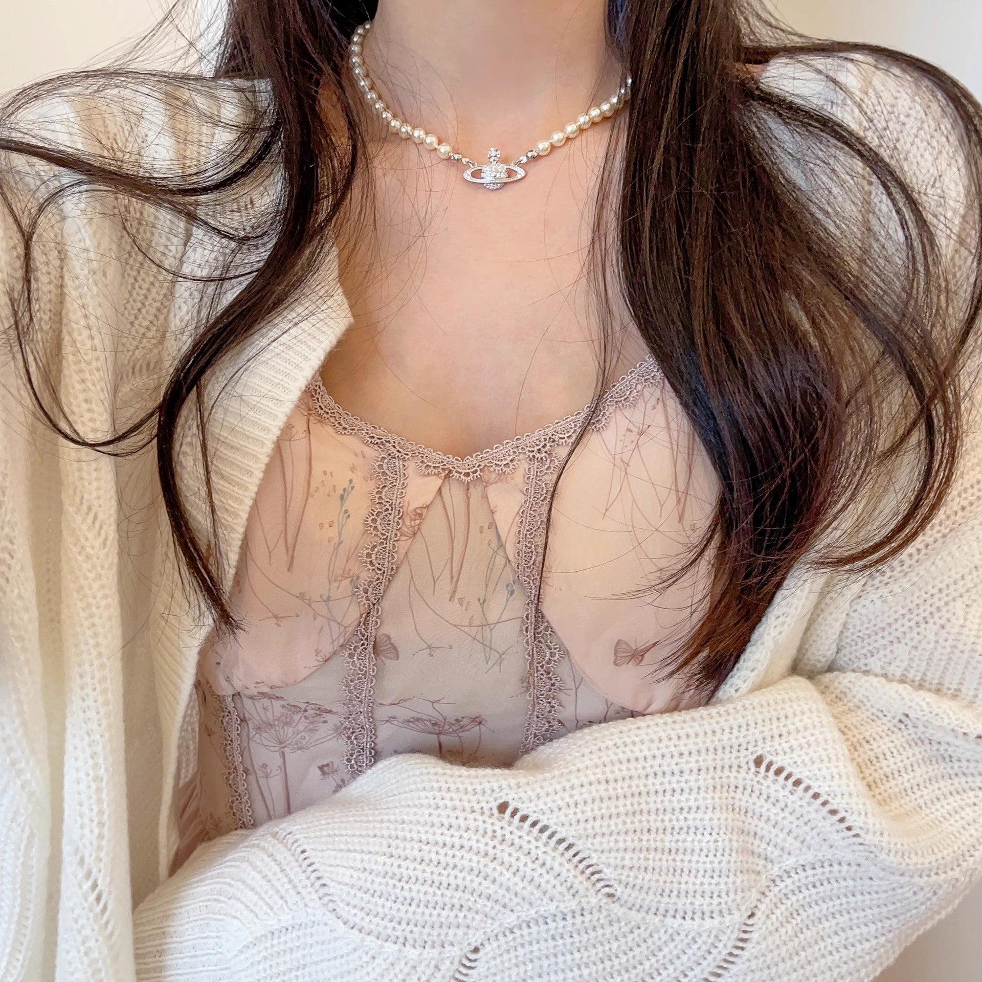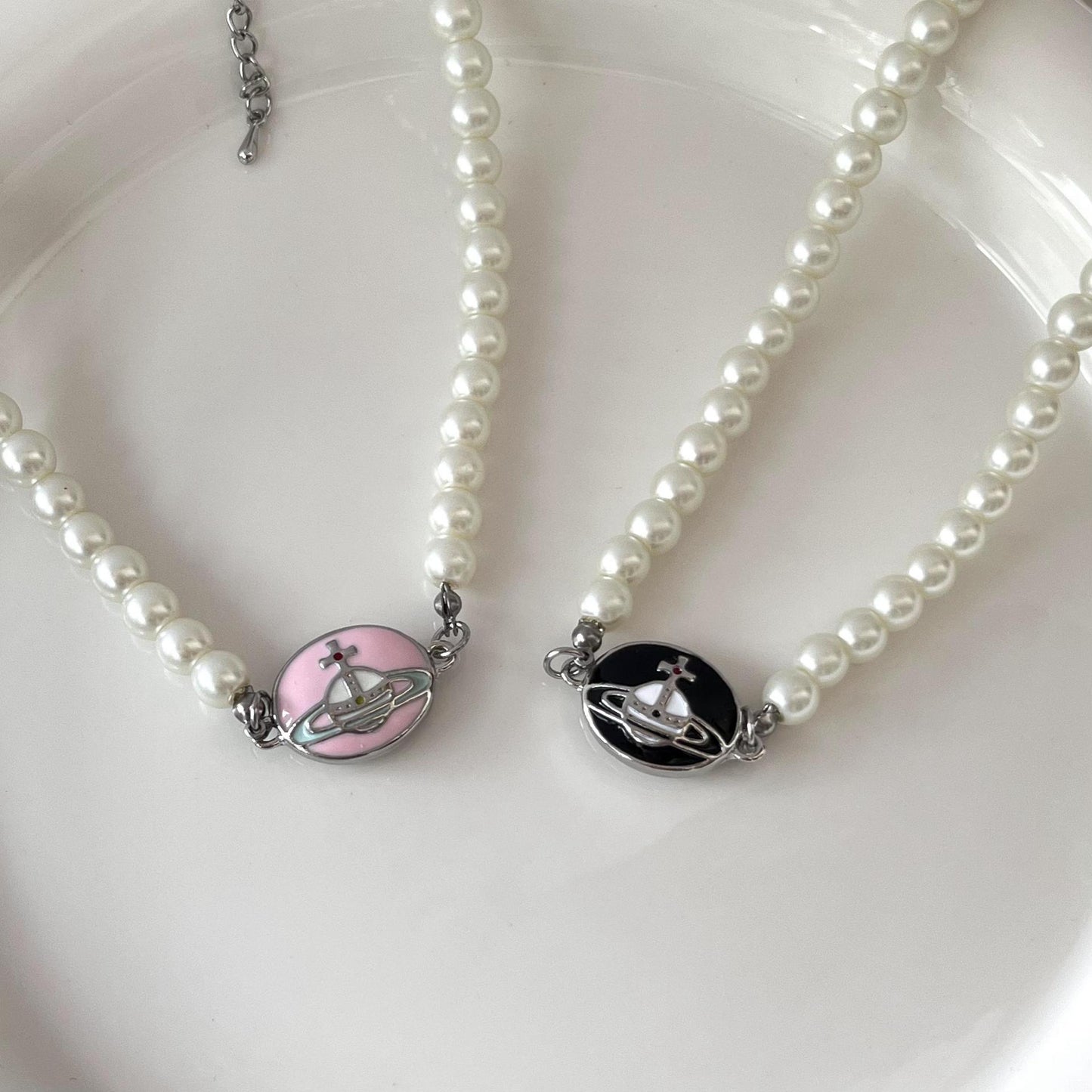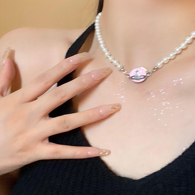 Women's Planet Imitation Pearl Enamel Pendant Necklace