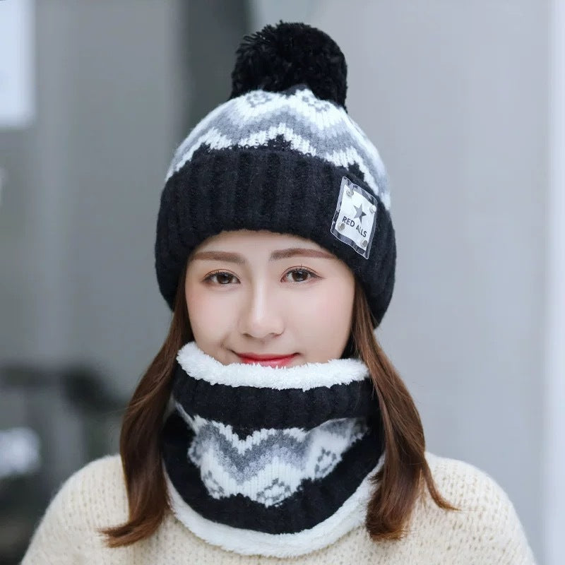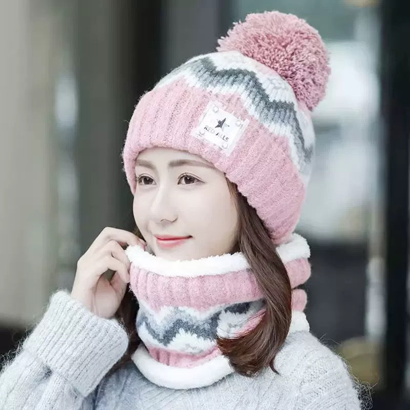 Women's Cozy Knit Wool Cap with Ear and Neck Warmer for Winter