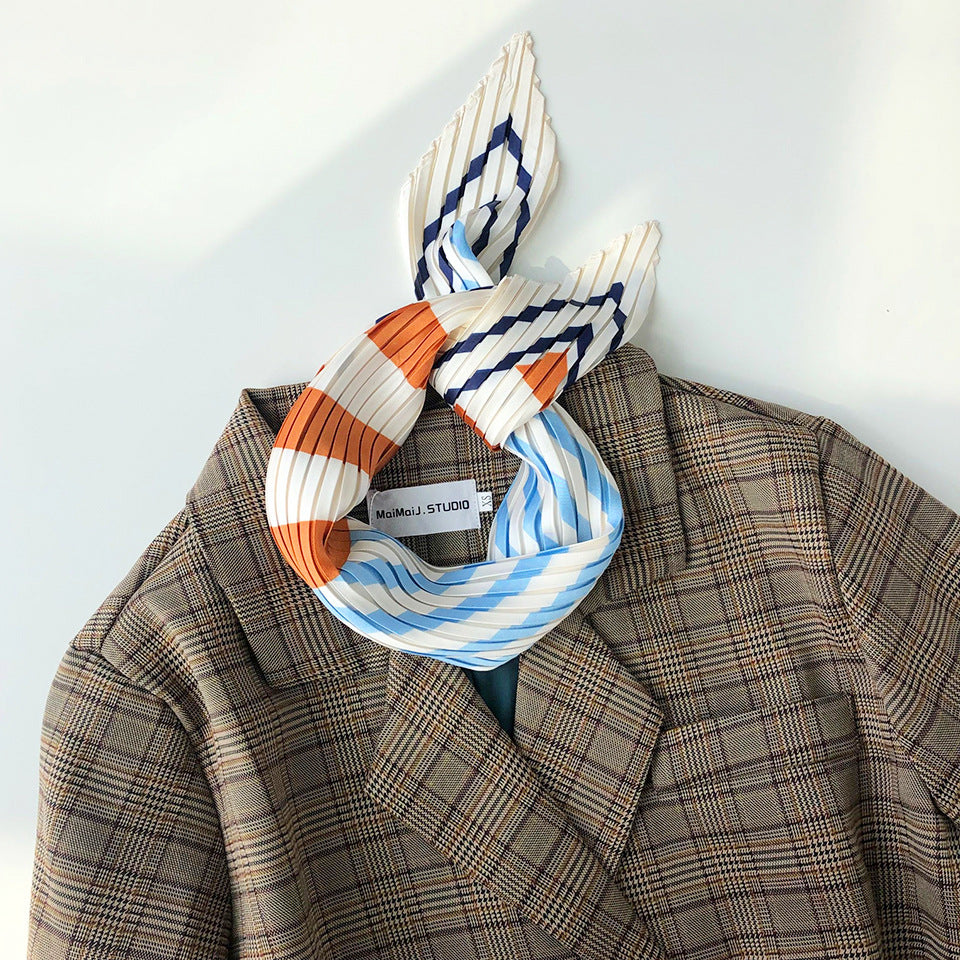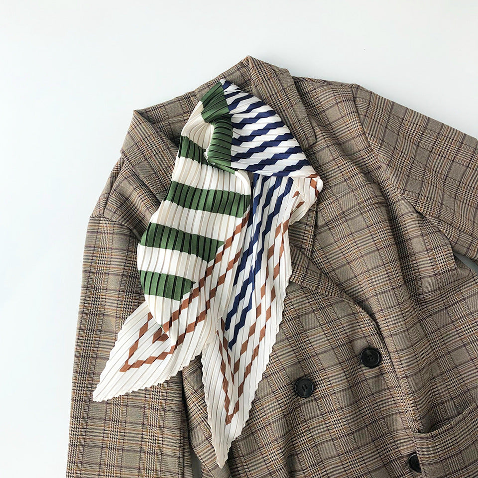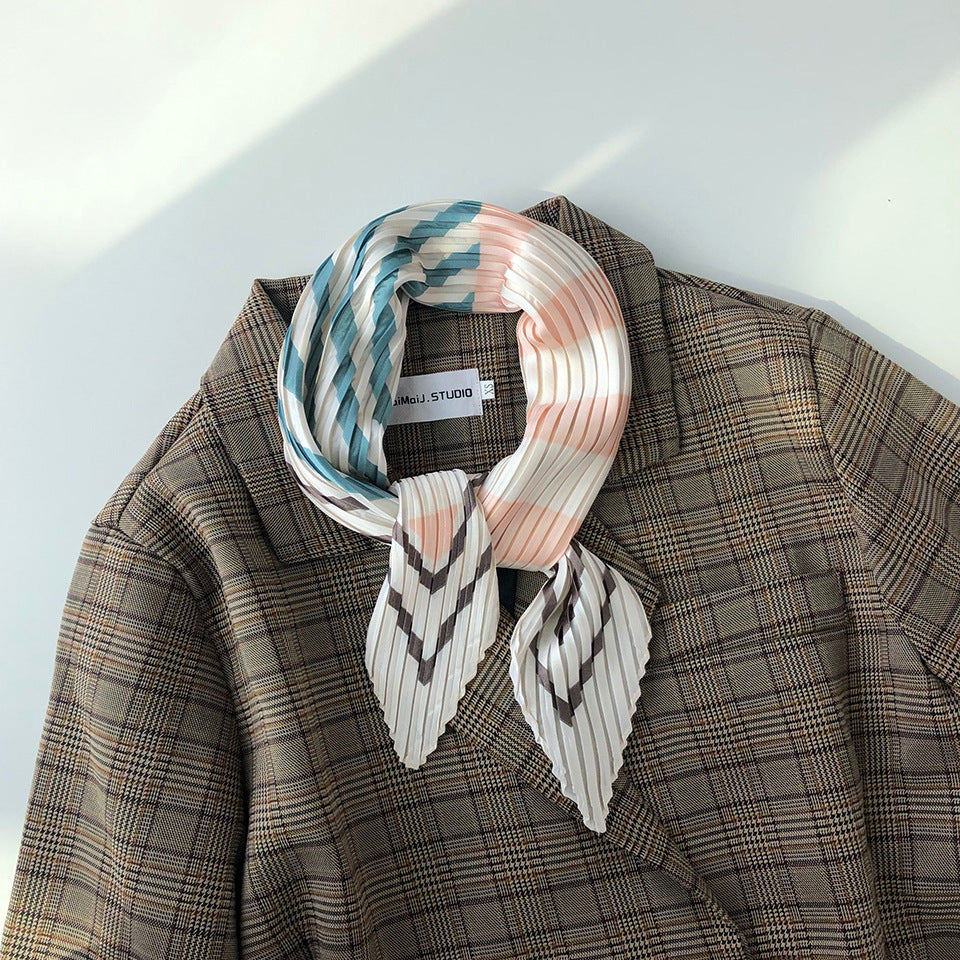 Women's Fashion Pleated Stripe Satin Silk Scarf