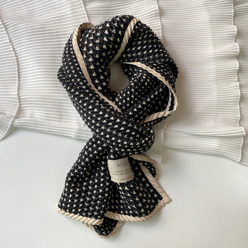 Women's Vintage Plaid Cotton Linen Houndstooth Scarf Shawl