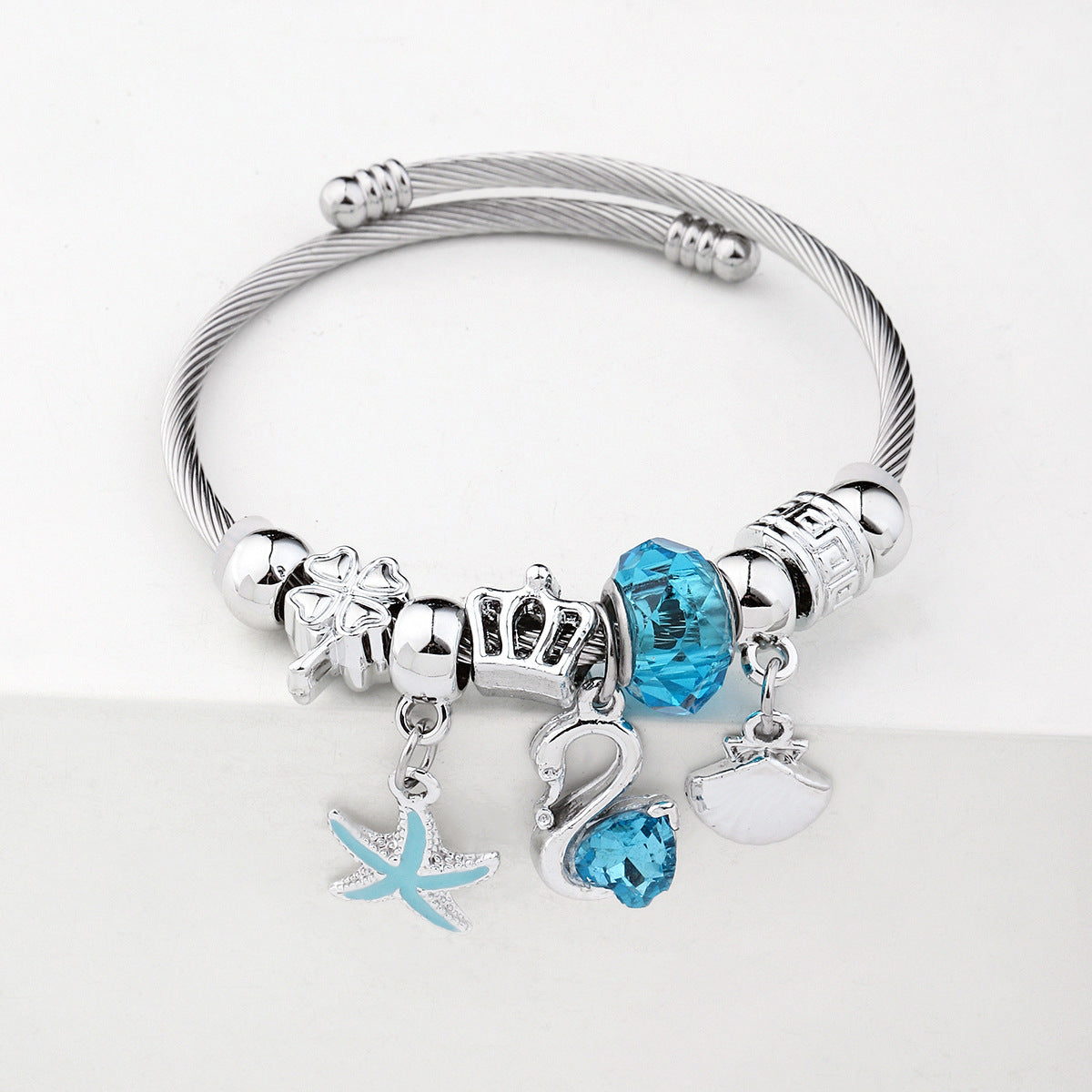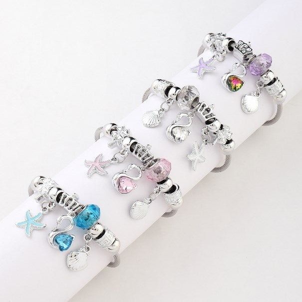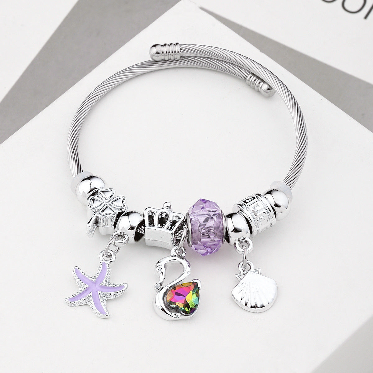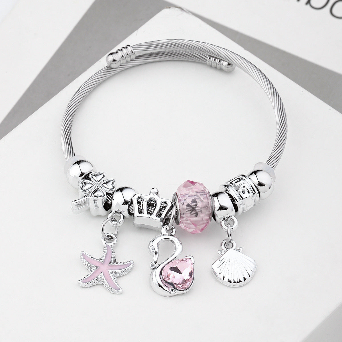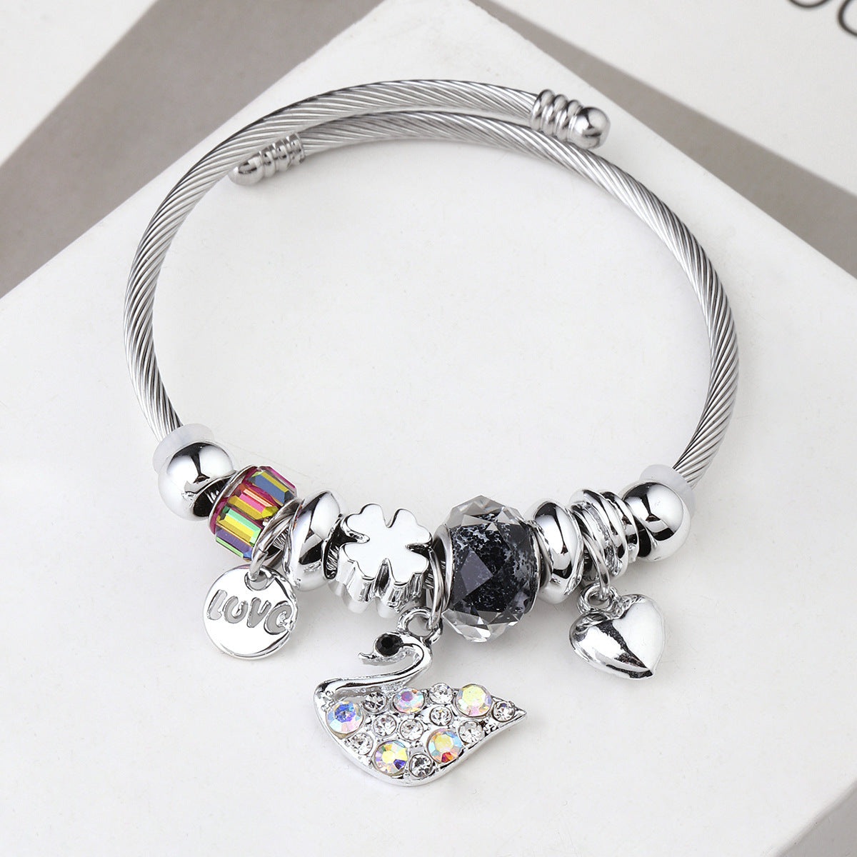 Y2K Swan Shell Stainless Steel Beaded Bracelet