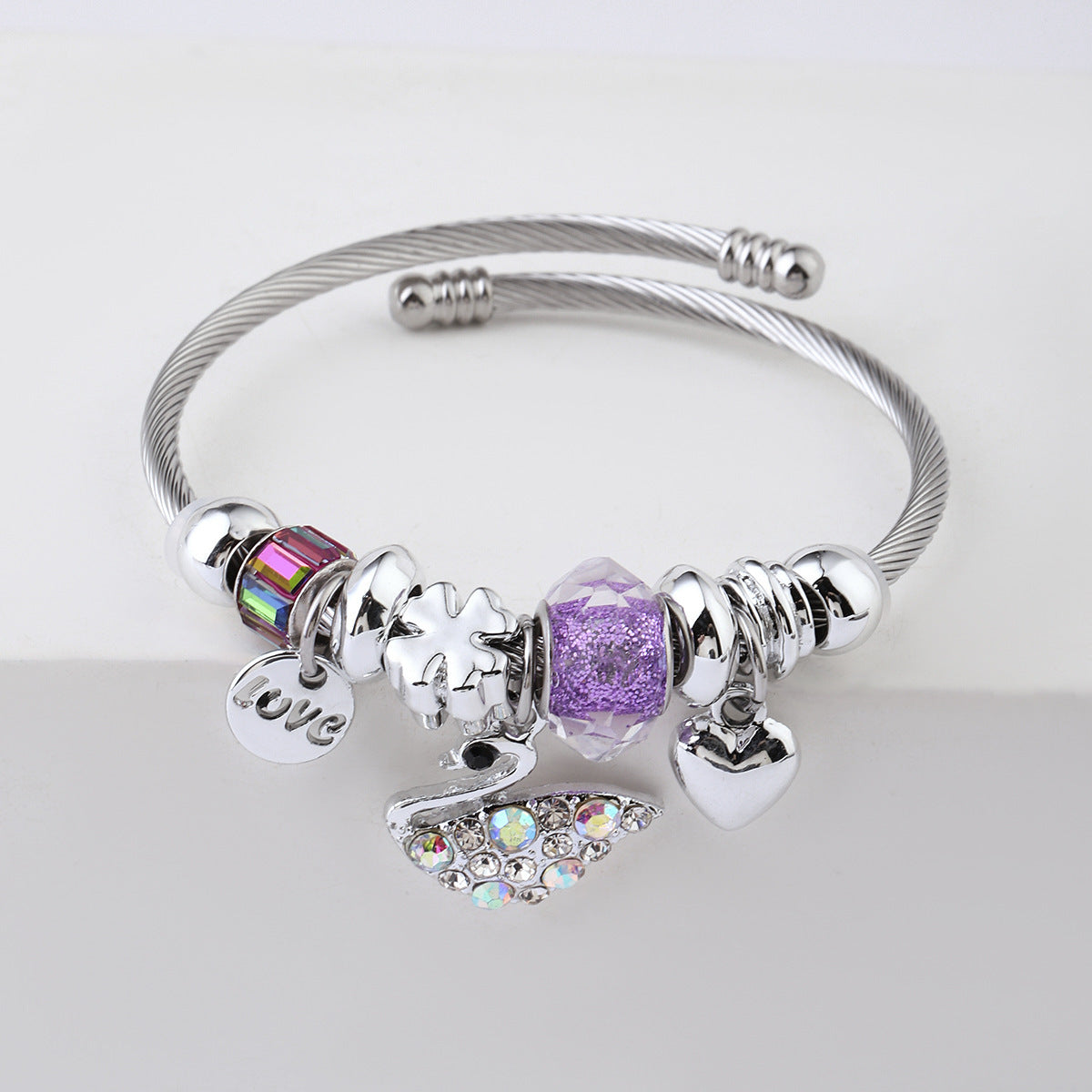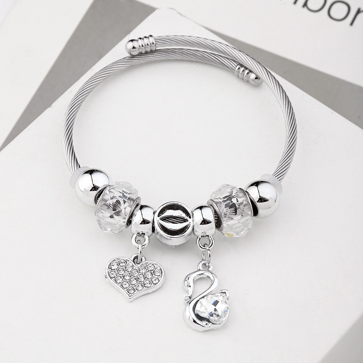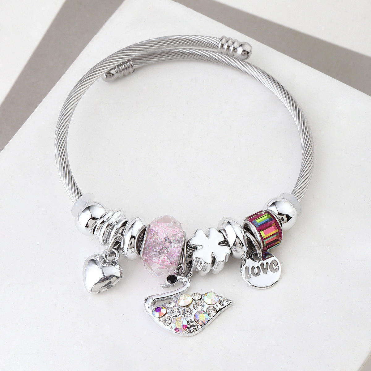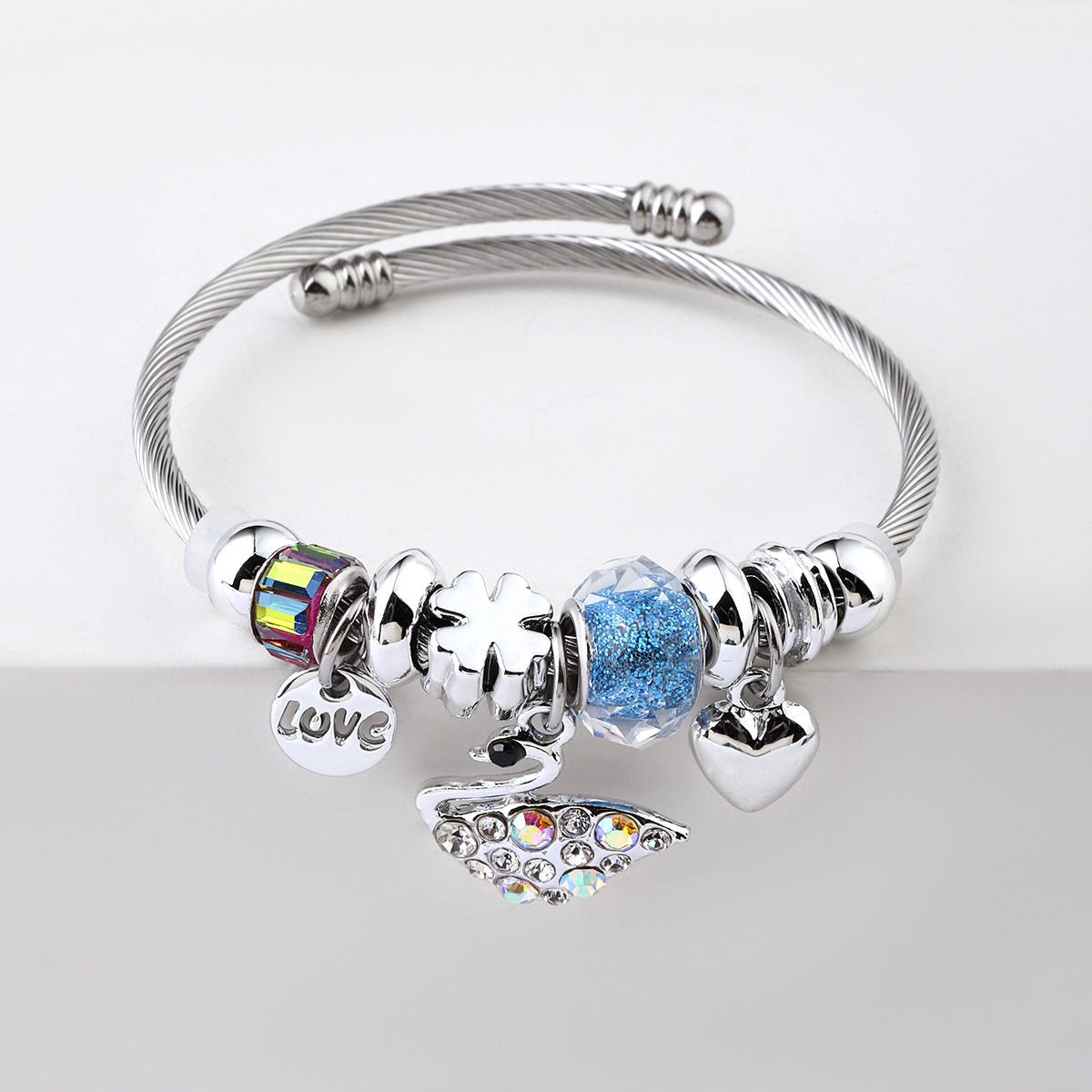 Y2K Swan Shell Stainless Steel Beaded Bracelet