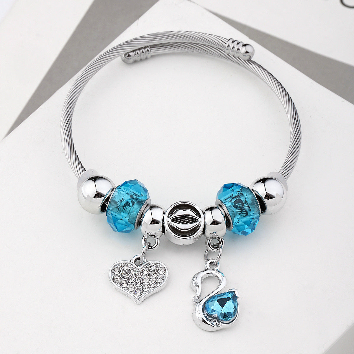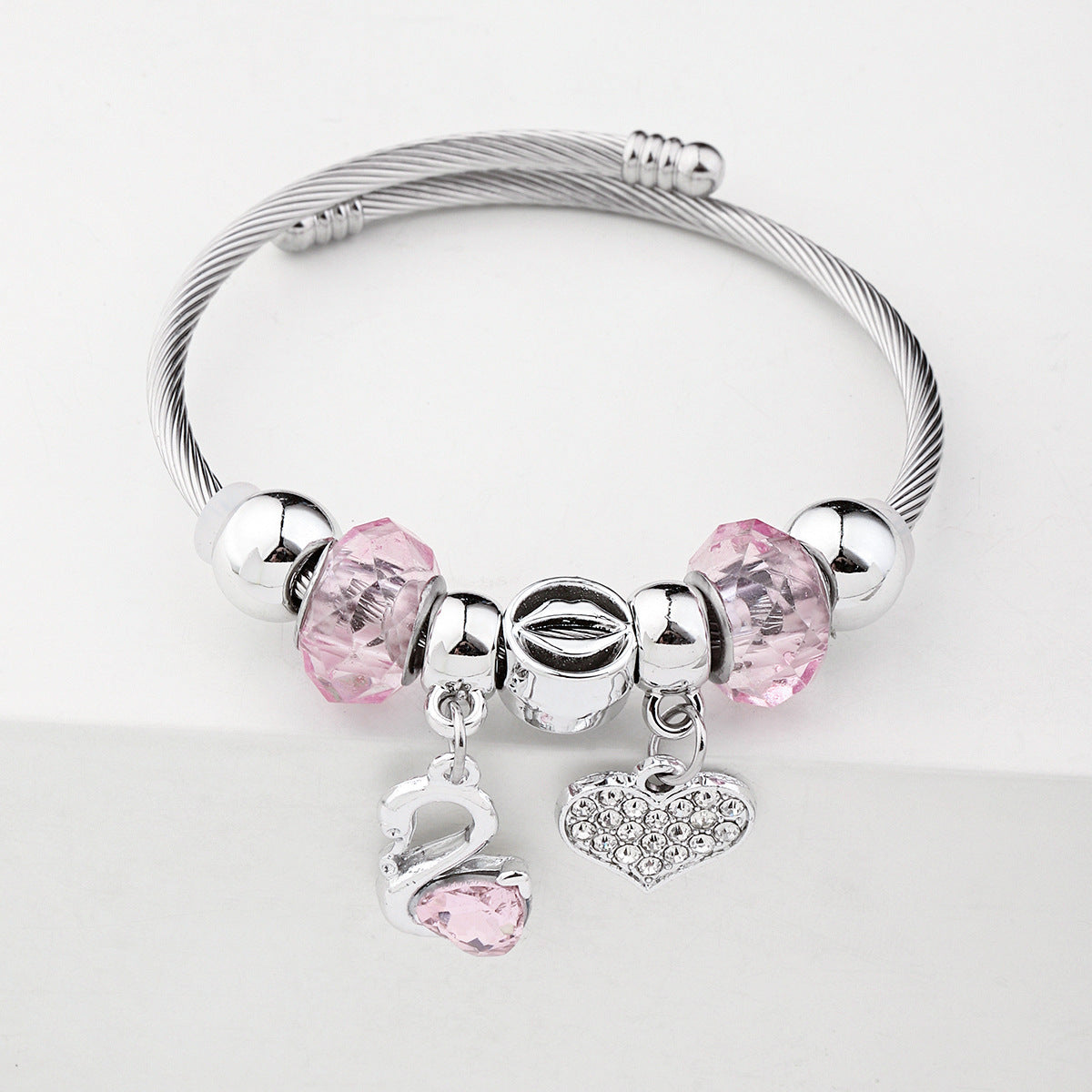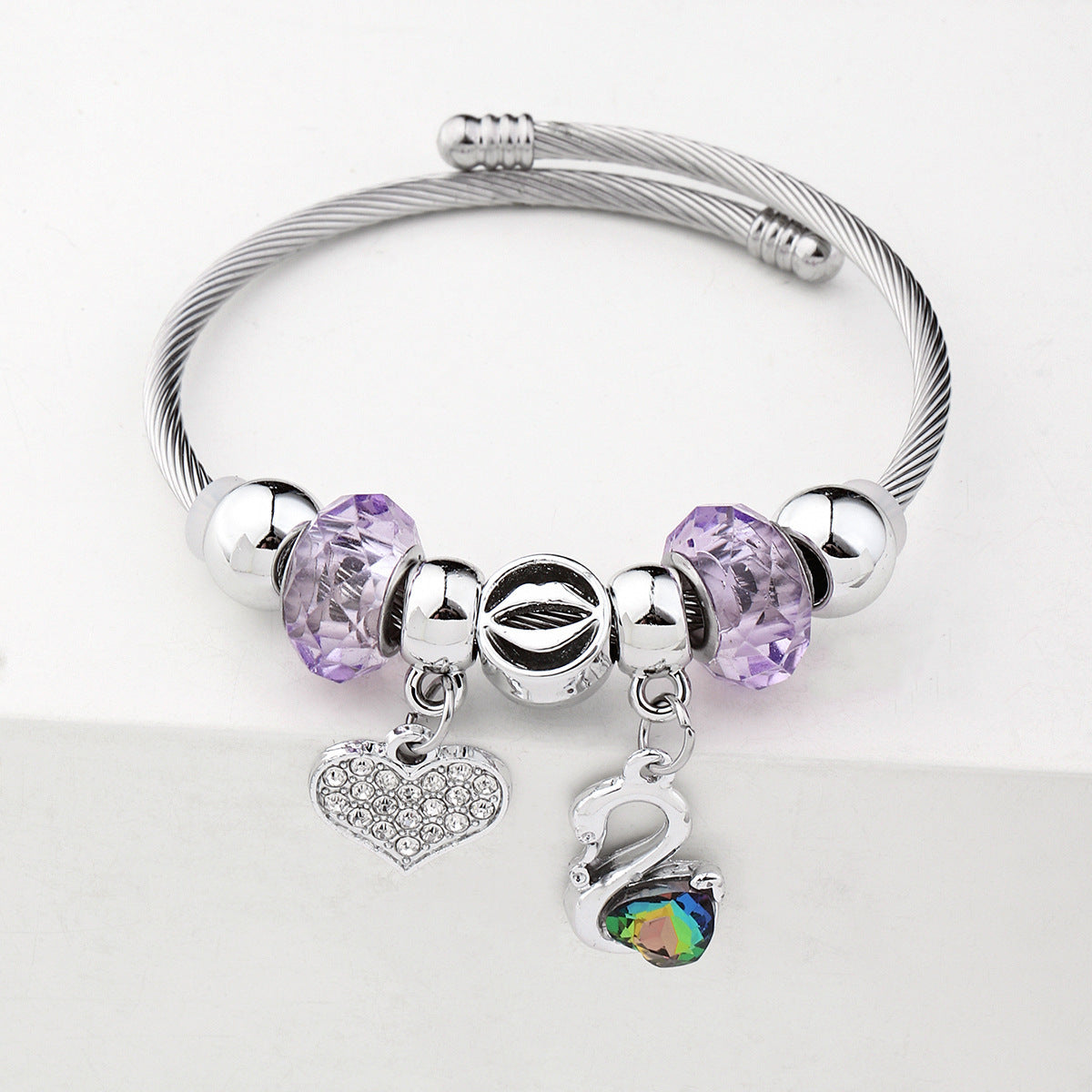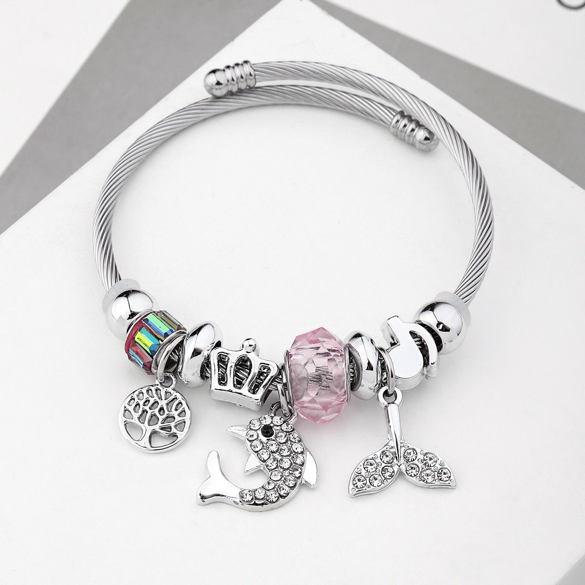 Y2K Swan Shell Stainless Steel Beaded Bracelet