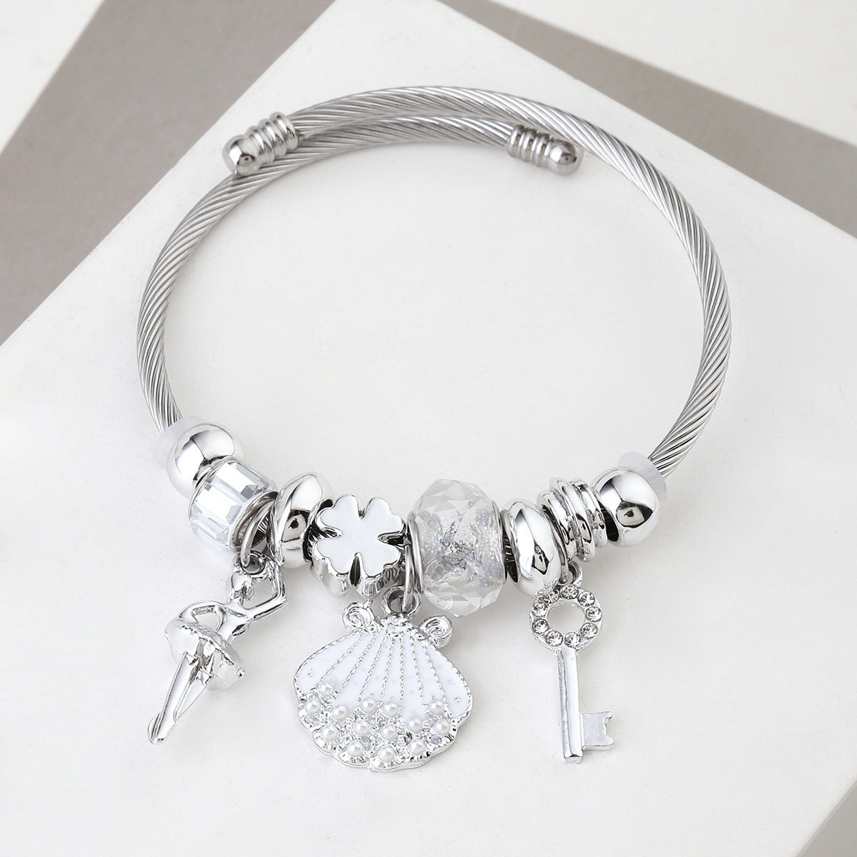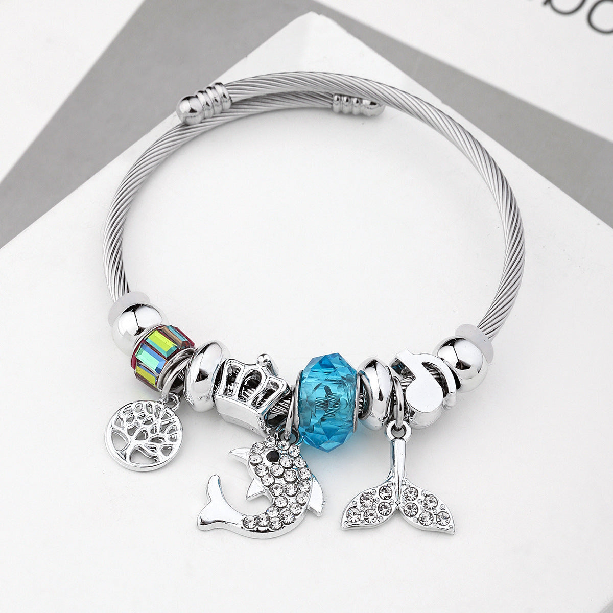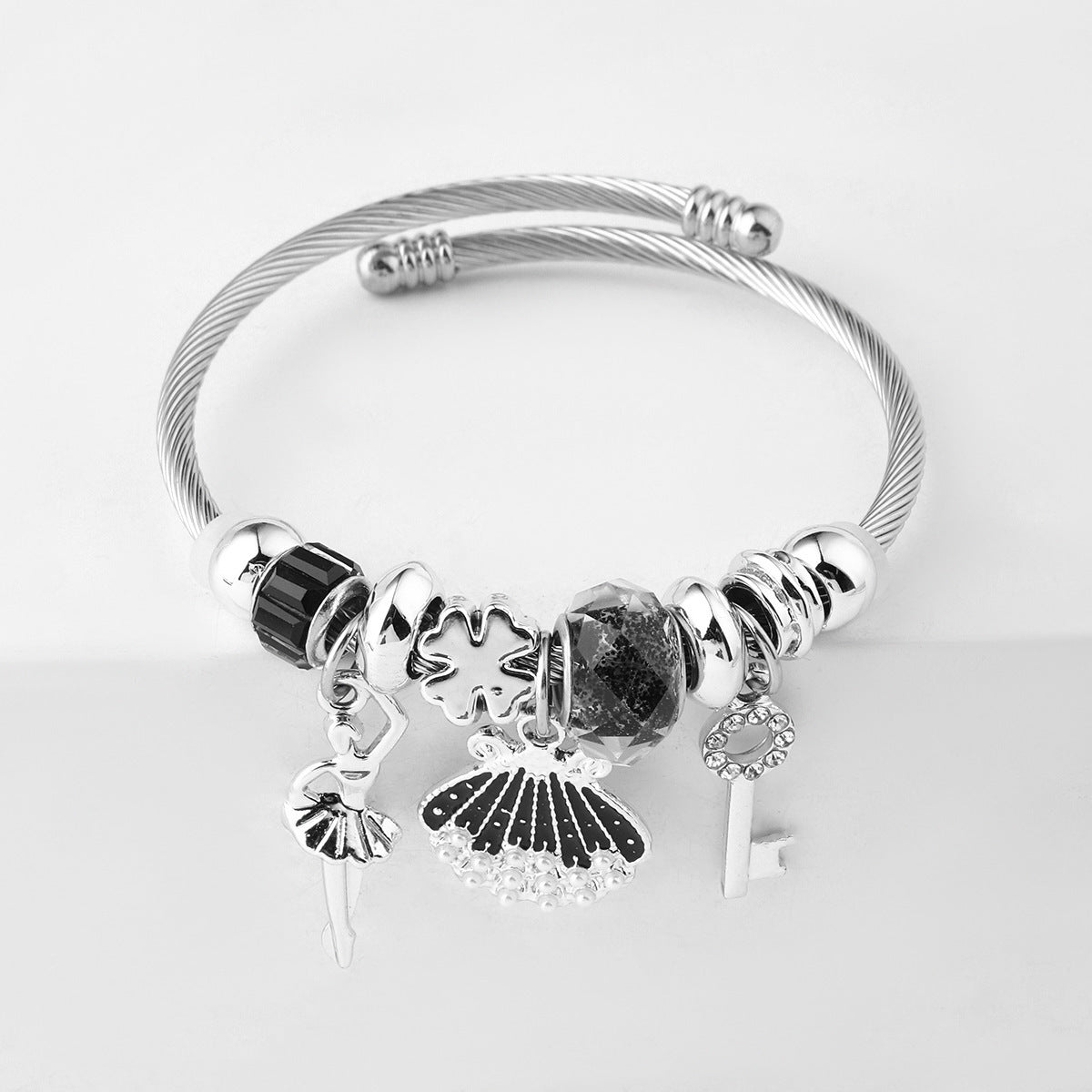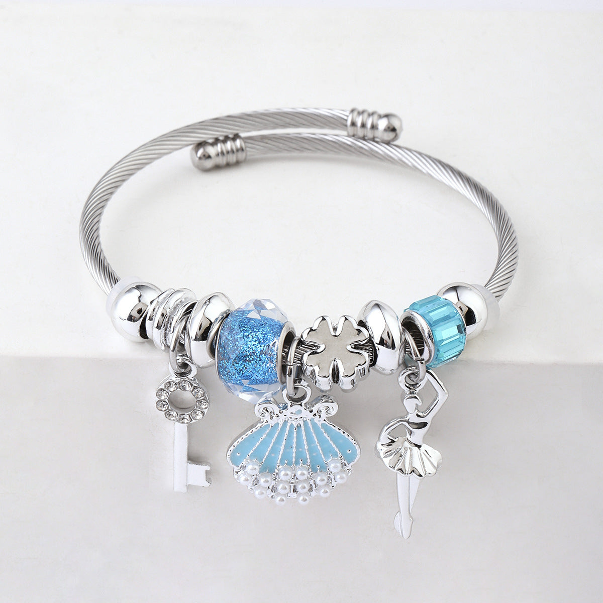 Y2K Swan Shell Stainless Steel Beaded Bracelet
