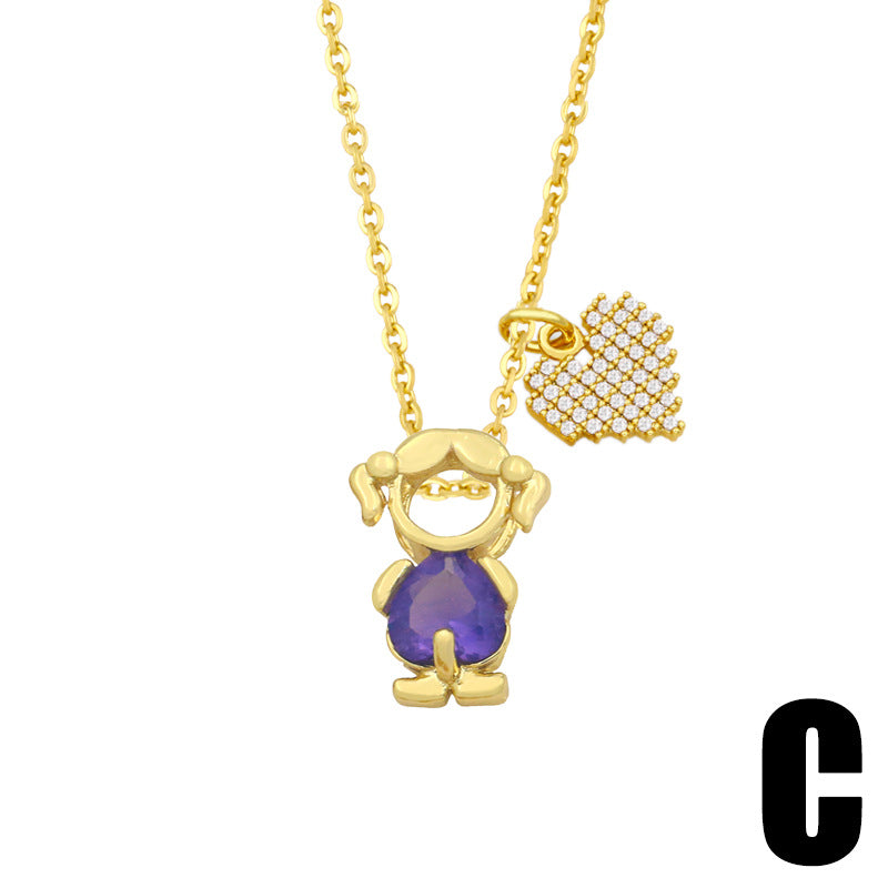 Zircon Heart Pendant Necklace for Couples - Boy and Girl Design